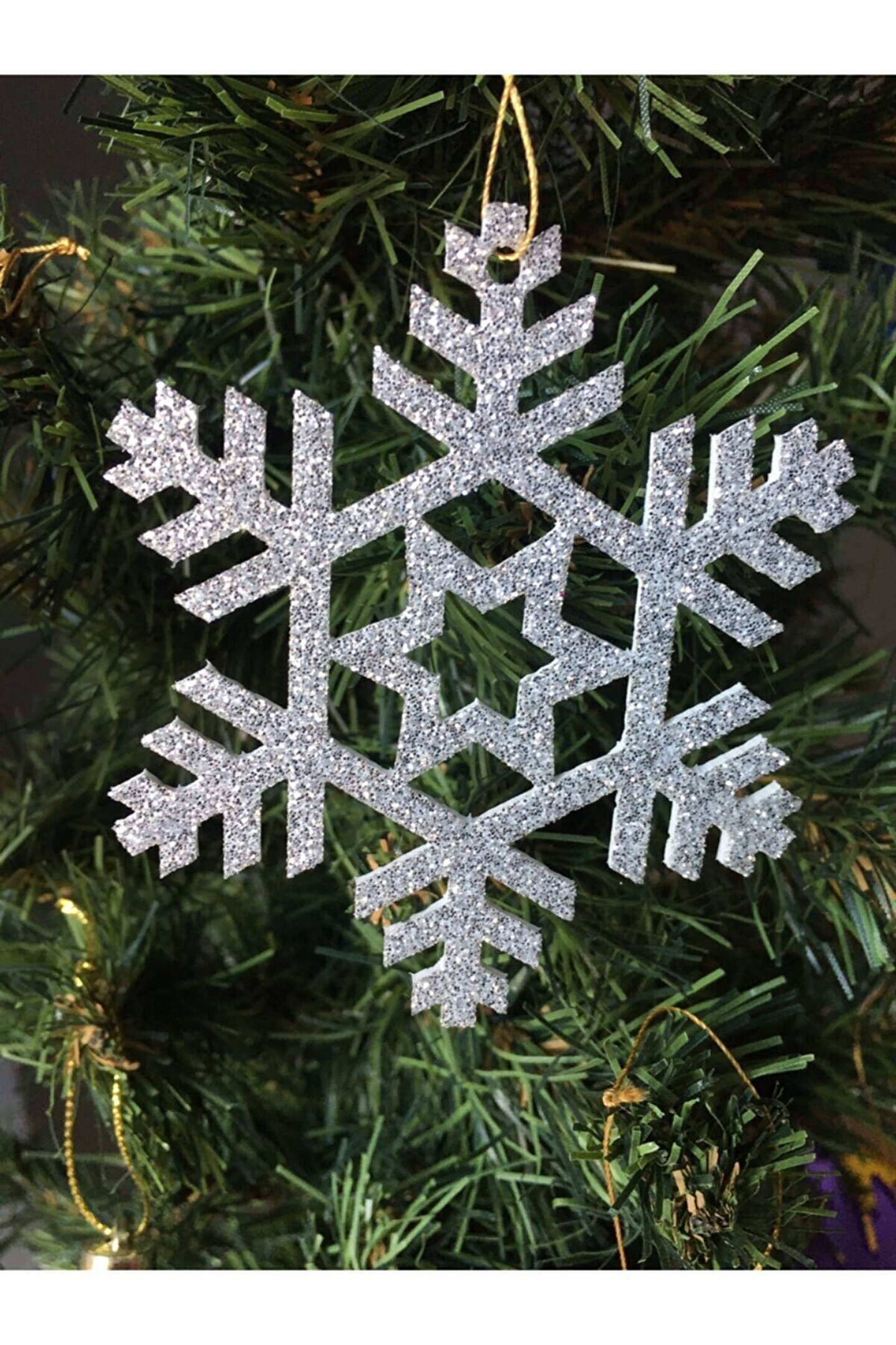 LEYLASER Gümüş Kar Tanesi Simli Eva Ağaç Ve Hediye Süsü 8x8cm 6lı