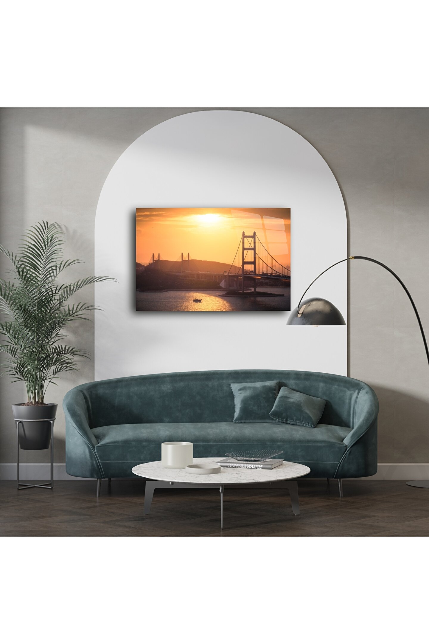 Bu büyüleyici cam tablo, İstanbul’un ikonik köprüsünü altın tonlarında günbatımı fonuyla yakalıyor. Gerçek cam üzerine yüksek çözünürlüklü baskı, manzaraya derinlik ve ışık oyunları kazandırırken, her bakışta huzur ve zarafet duygusu uyandırır. Oturma odanızda, ofisinizde veya giriş alanınızda zamansız bir atmosfer yaratmak için mükemmel bir parça.