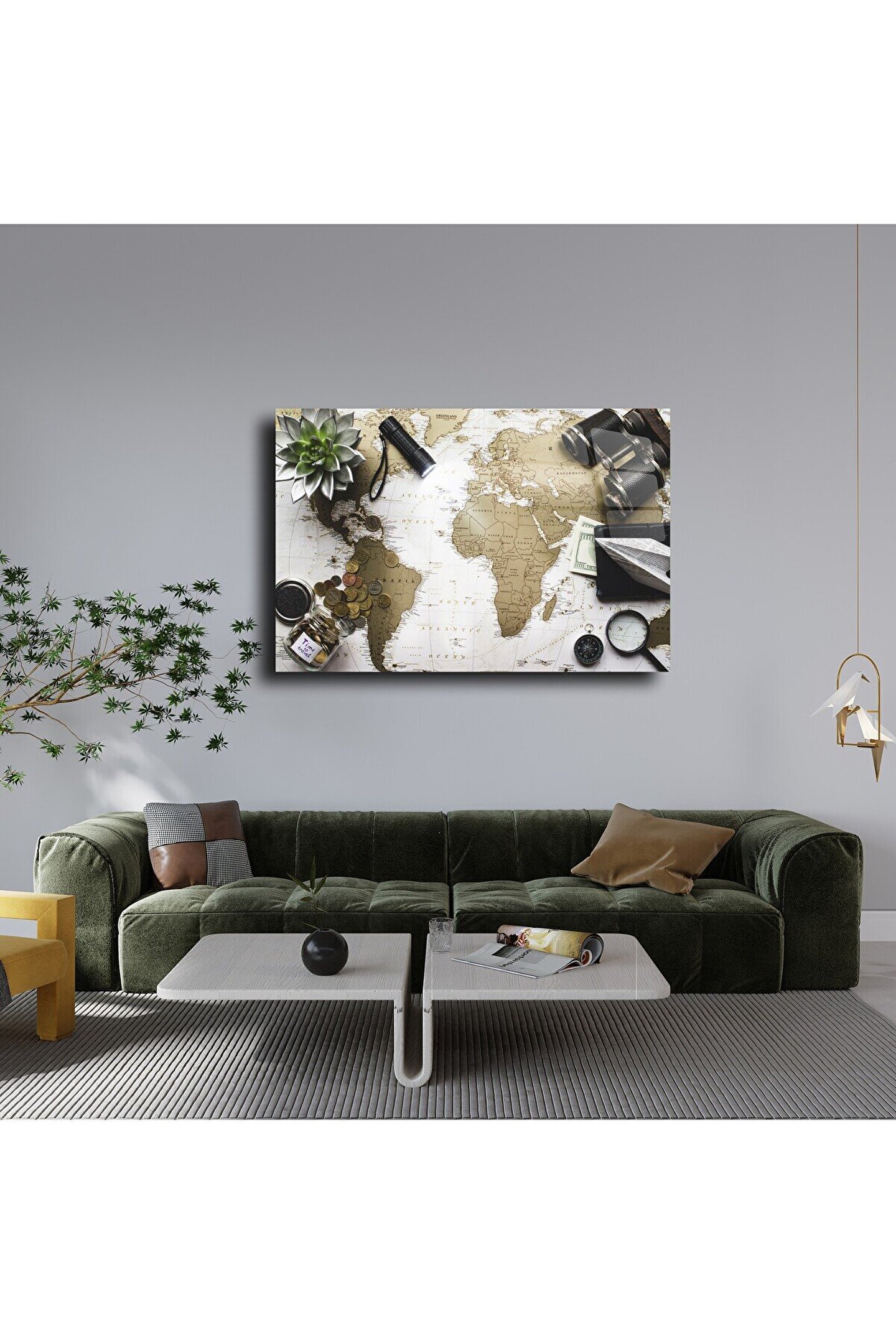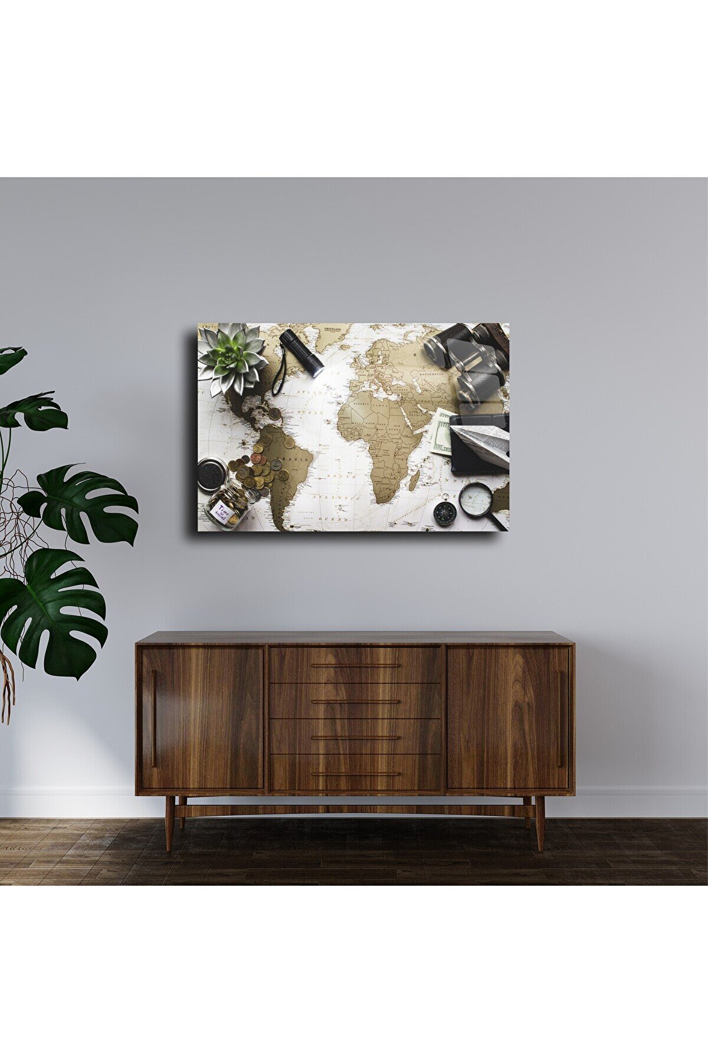LEYLASER Harita Görseli Cam Tablo Duvar Dekoru 2