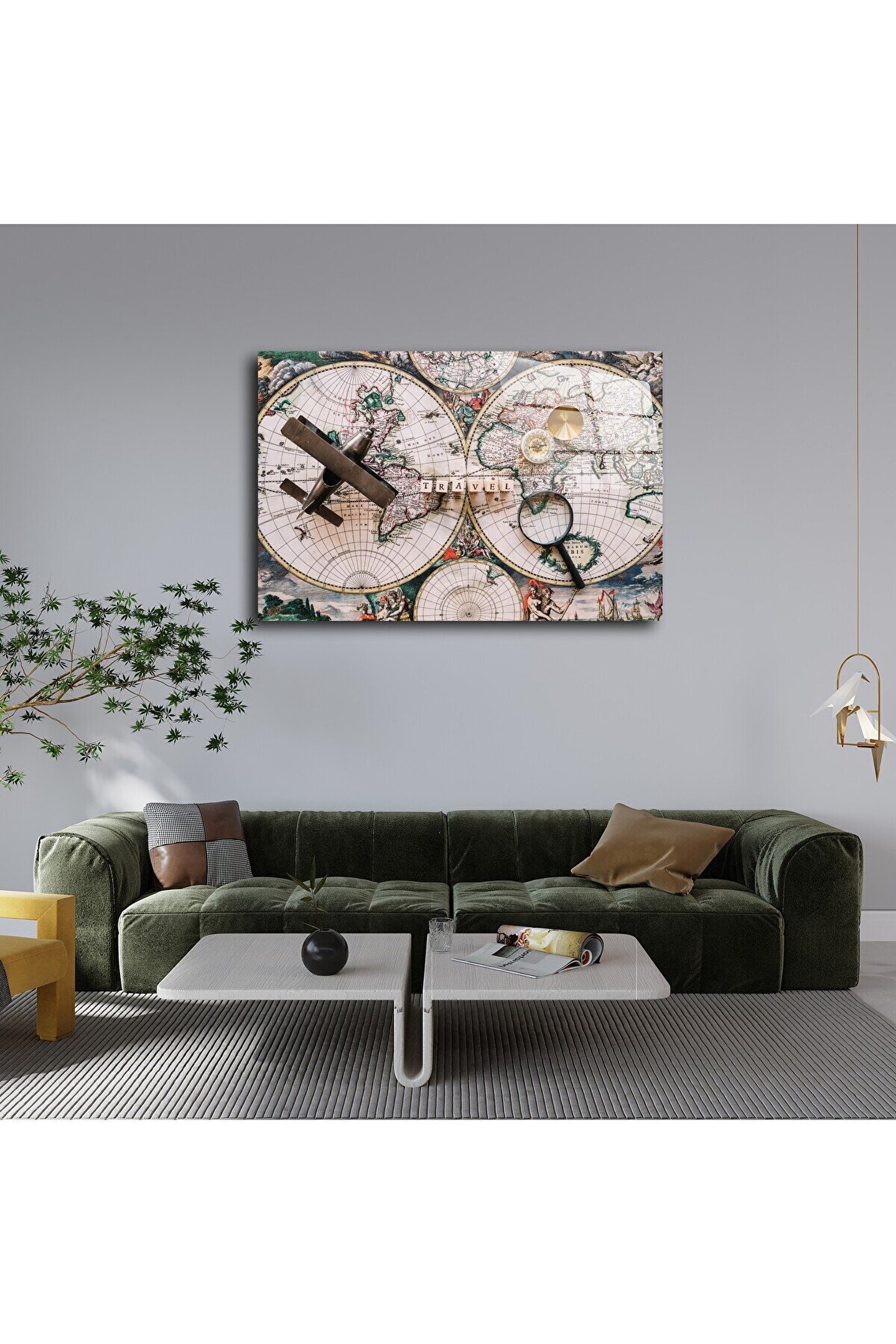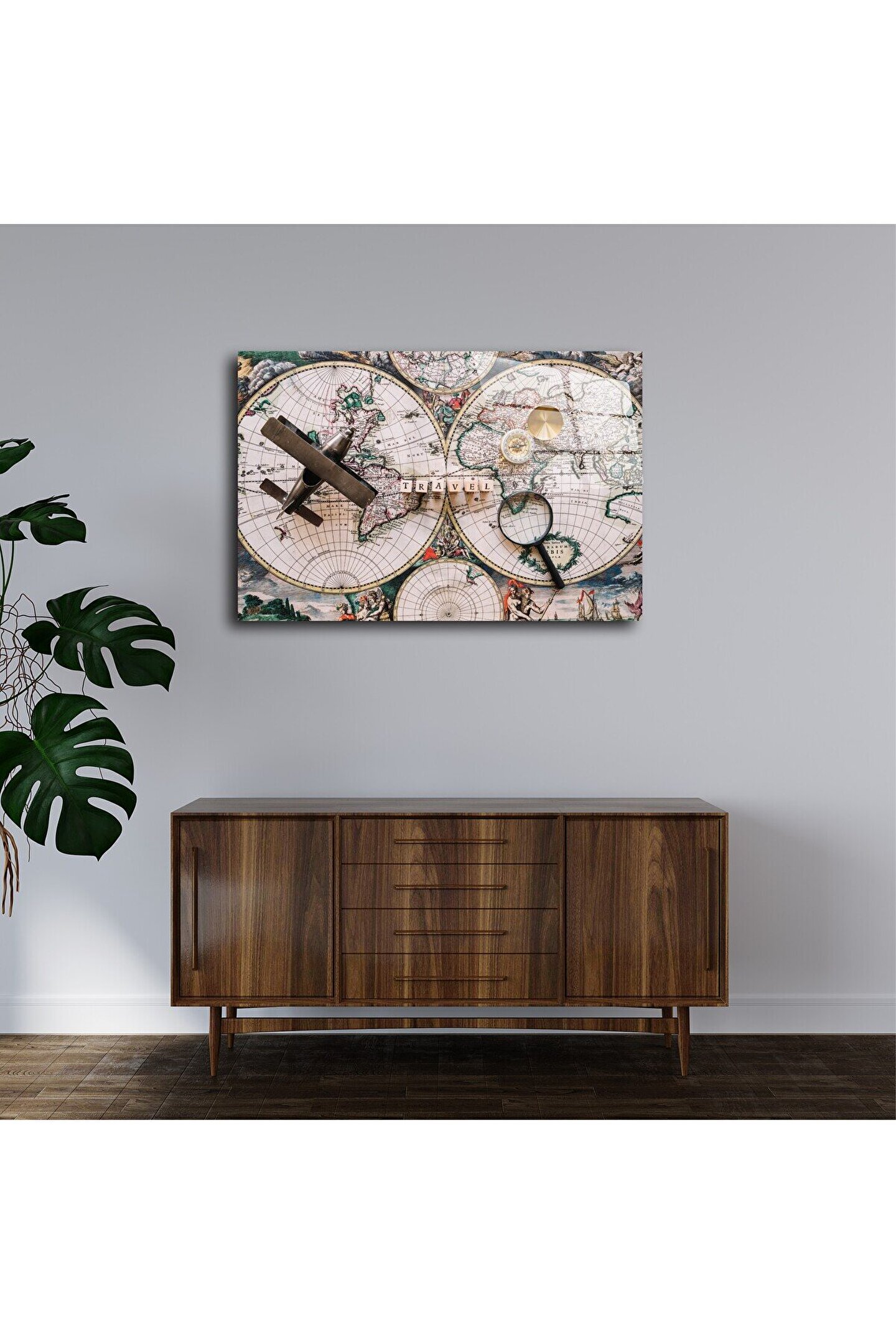 LEYLASER Harita Görseli Cam Tablo Duvar Dekoru 3