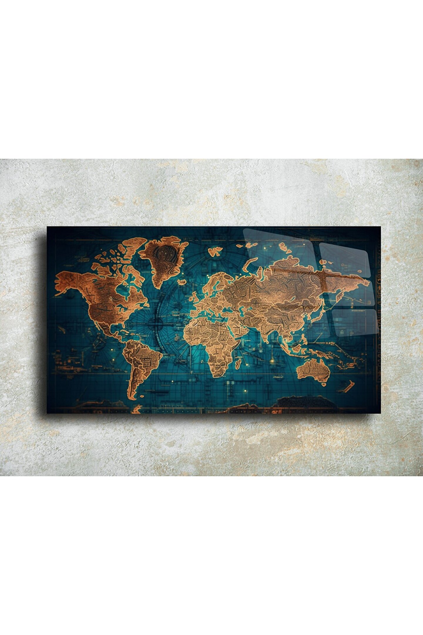 LEYLASER Harita Görseli Cam Tablo Duvar Dekoru 5