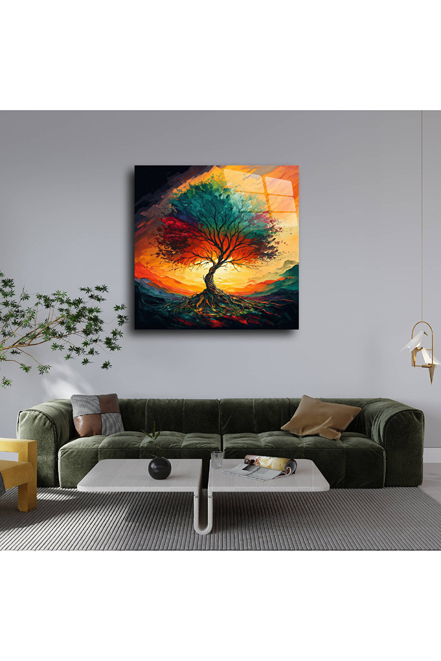 LEYLASER Hayat Ağacı Görseli Cam Tablo Duvar Dekoru 7