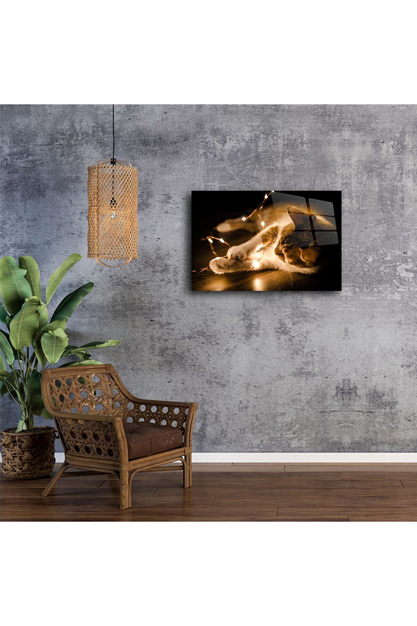 Bu ışıklarla oynayan kedi temalı cam tablo, gecenin sıcaklığı ve sevimliliğiyle buluştuğu anı yakalıyor. Parlak LED ışıkların kedinin tüylerinde yumuşak şekilde yansıdığı bu sahne, yüksek kaliteli temperli camüzerine yüksek çözünürlüklü ve canlı baskıyla sunulmuştur.