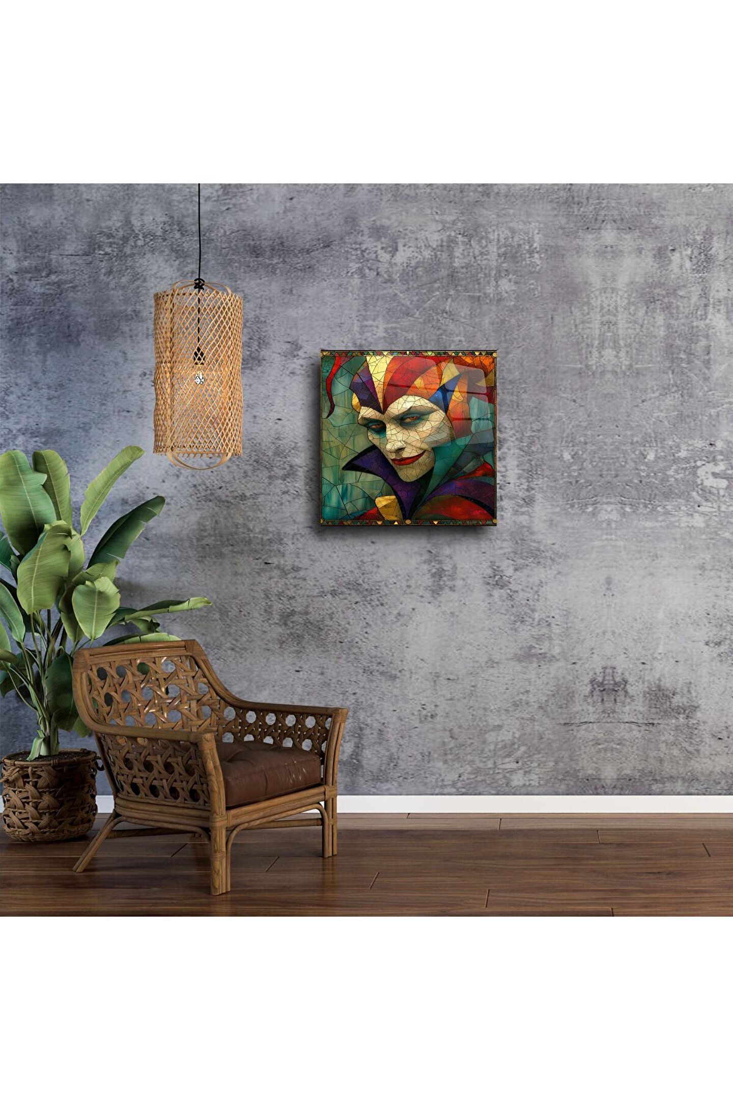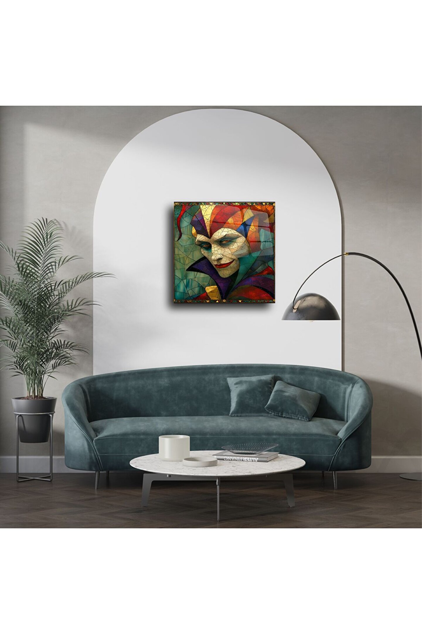 Dikkat çekici ve sıradışı bu joker maskeli cam tablo, gotik estetikle renklerin çarpıcı buluştuğu sanatsal bir dekor parçası sunuyor. Kırılgan vitray efekti ve gizemli bakışlar, her ortamda derin bir atmosfer yaratıyor.