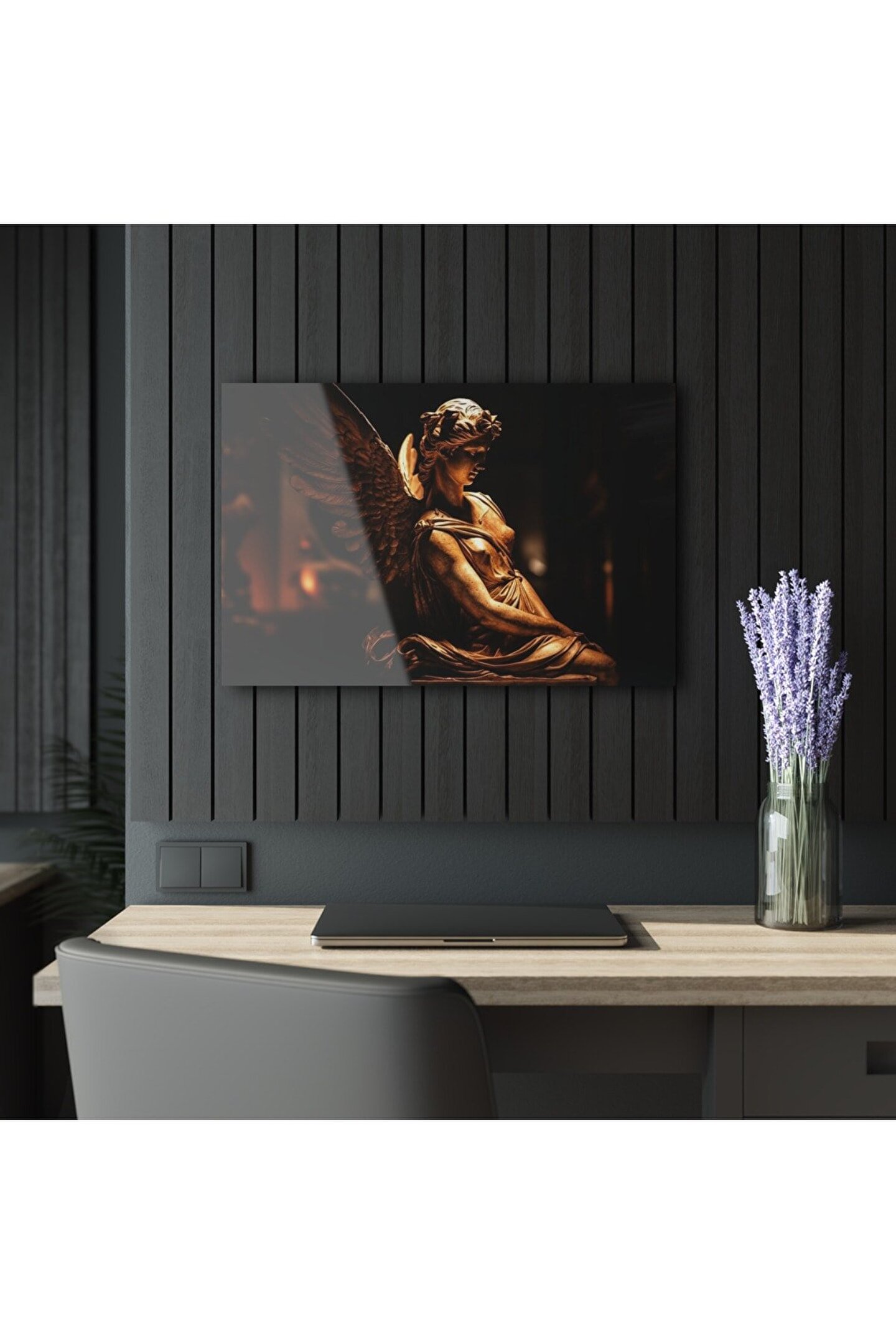 LEYLASER Kadın Melek Heykel Cam Tablo Duvar Dekoru