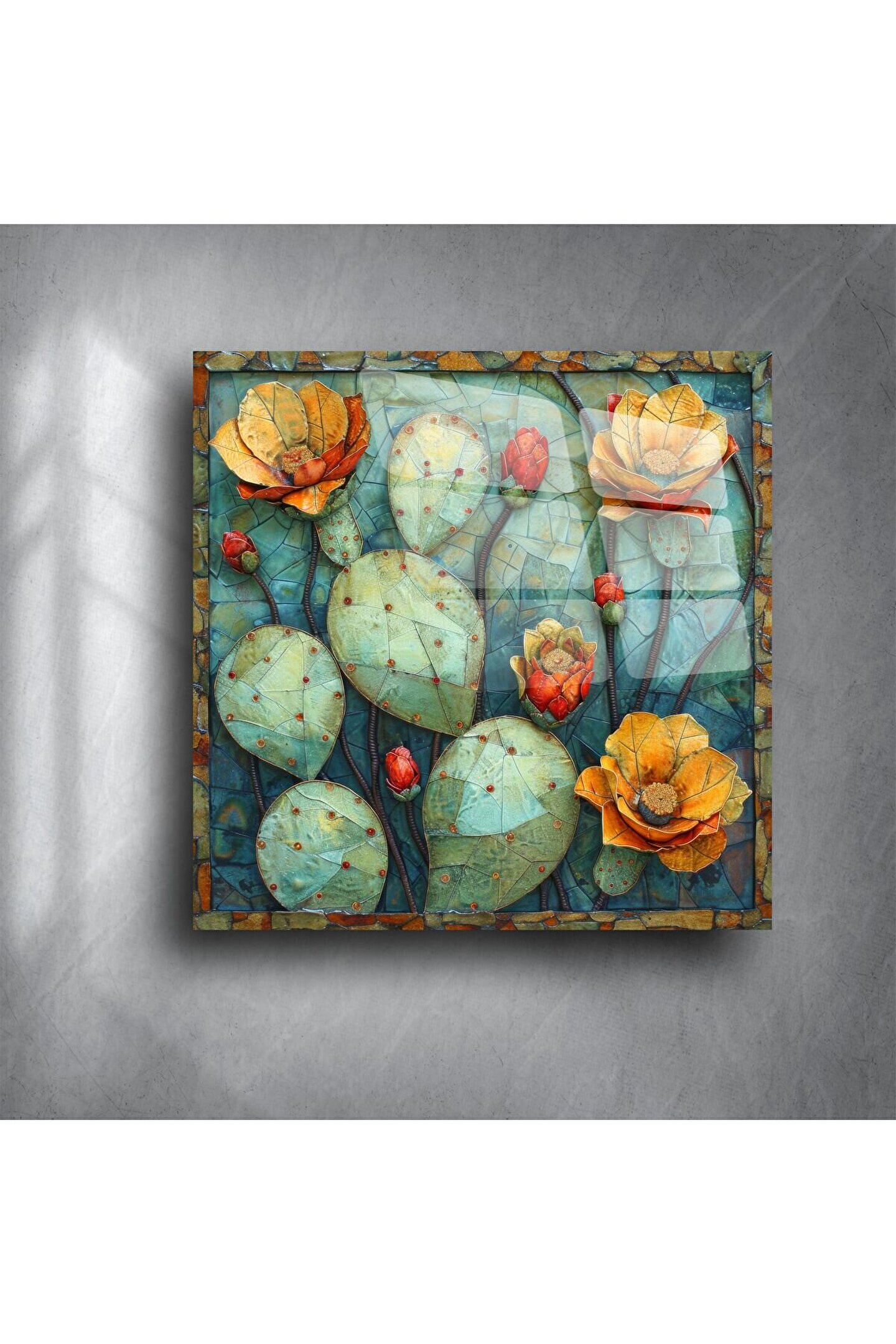 Doğanın doğal formlarından ilham alan bu kaktüs desenli cam tablo, yaşam alanlarınıza modern ve bohem bir ruh katıyor. Özenle yerleştirilmiş yeşil tonlarındaki yapraklar ve sıcak tonlarda açan çiçekler, dikkat çekici bir vitray etkisi yaratıyor.