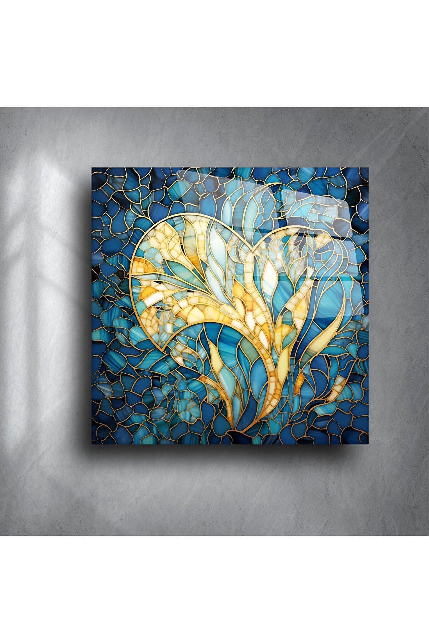 Aşkın ve sanatın birleştiği bu kalp desenli cam tablo, mavi ve altın tonların zarif uyumuyla evinizde duygusal bir atmosfer yaratır. Işıkla bütünleşen vitray efektli yapısı, romantizmi ve zarafeti aynı anda yansıtır.