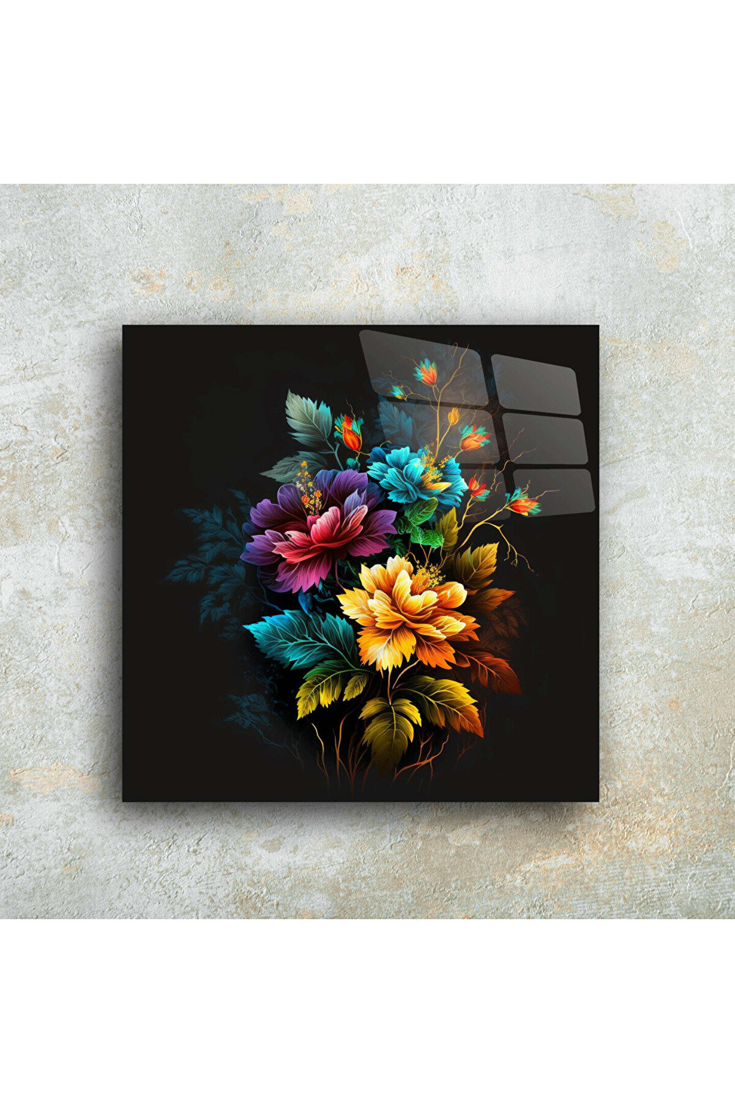 LEYLASER Karışık Renkli Çiçekler Cam Tablo Duvar Dekoru