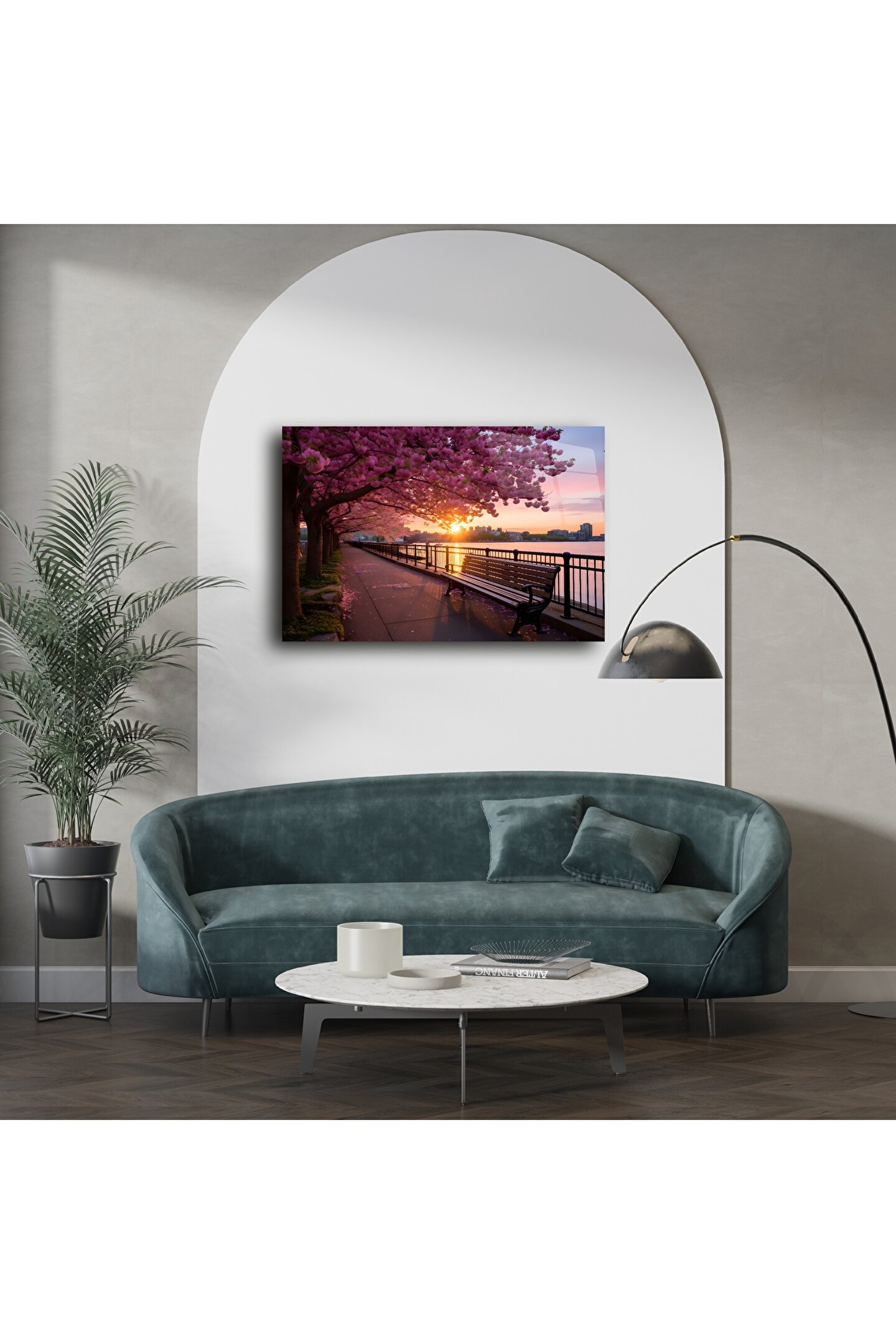 • Bu etkileyici kiraz çiçeği gün batımı park bankı kanvas tablosu ile yaşam alanınıza huzur, renk ve dinginlik katın. Sakura ağaçlarının yumuşak pembe tonları, gün batımında sakin bir sahil yolunu süslerken; bu sahne, müze kalitesinde bir baskı ile ölümsüzleştirildi.