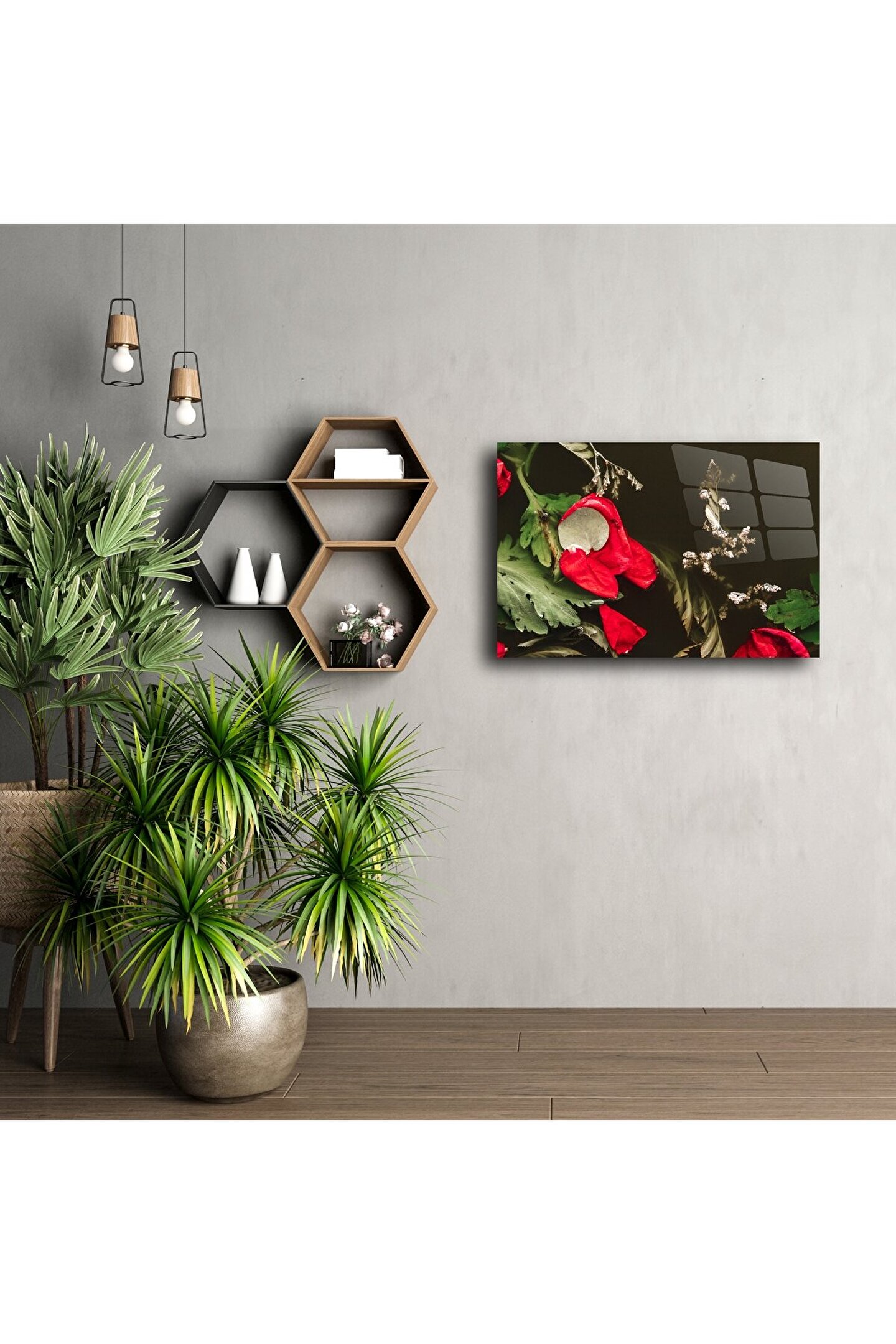 Doğanın zarafetini evinize taşıyan bu cam tablo, kırmızı gelincik çiçekleri ve yeşil yaprakların sanatsal birleşimiyle sakinlik ve şıklığı bir araya getiriyor. Parlak cam yüzey üzerine yapılan detaylı baskı, çiçekleri adeta canlıymış gibi yansıtarak duvarınıza hayat katar.