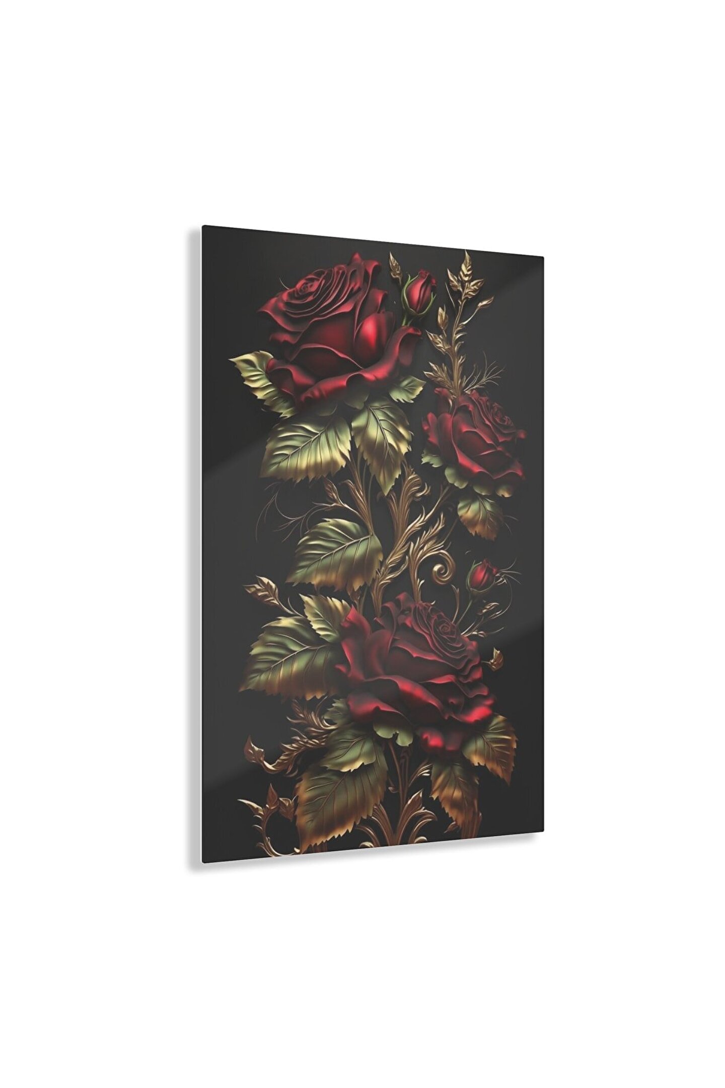 LEYLASER Kırmızı Gold Renkli Gül Cam Tablo Duvar Dekoru