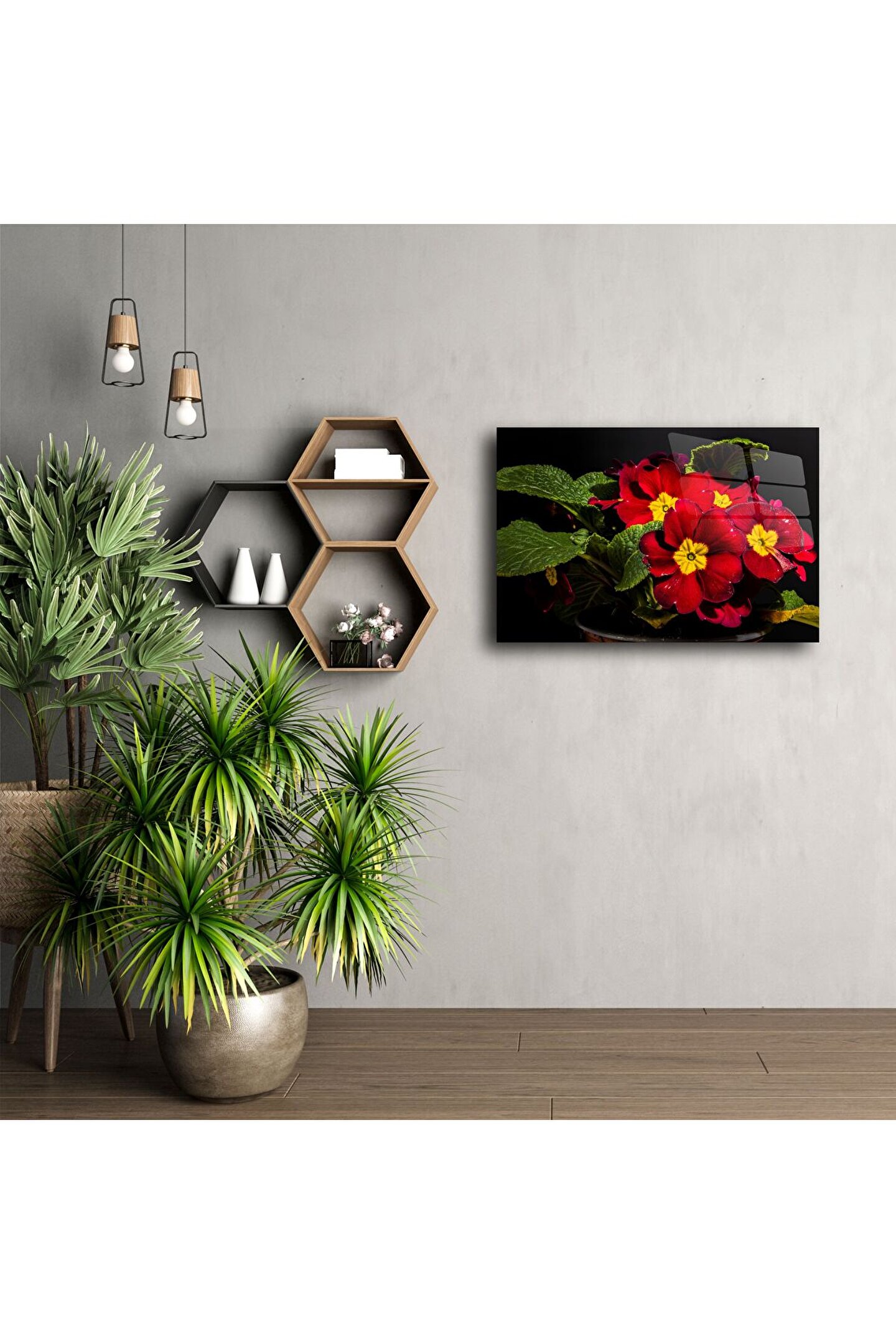 LEYLASER Kırmızı Primula Çiçekli Cam Tablo