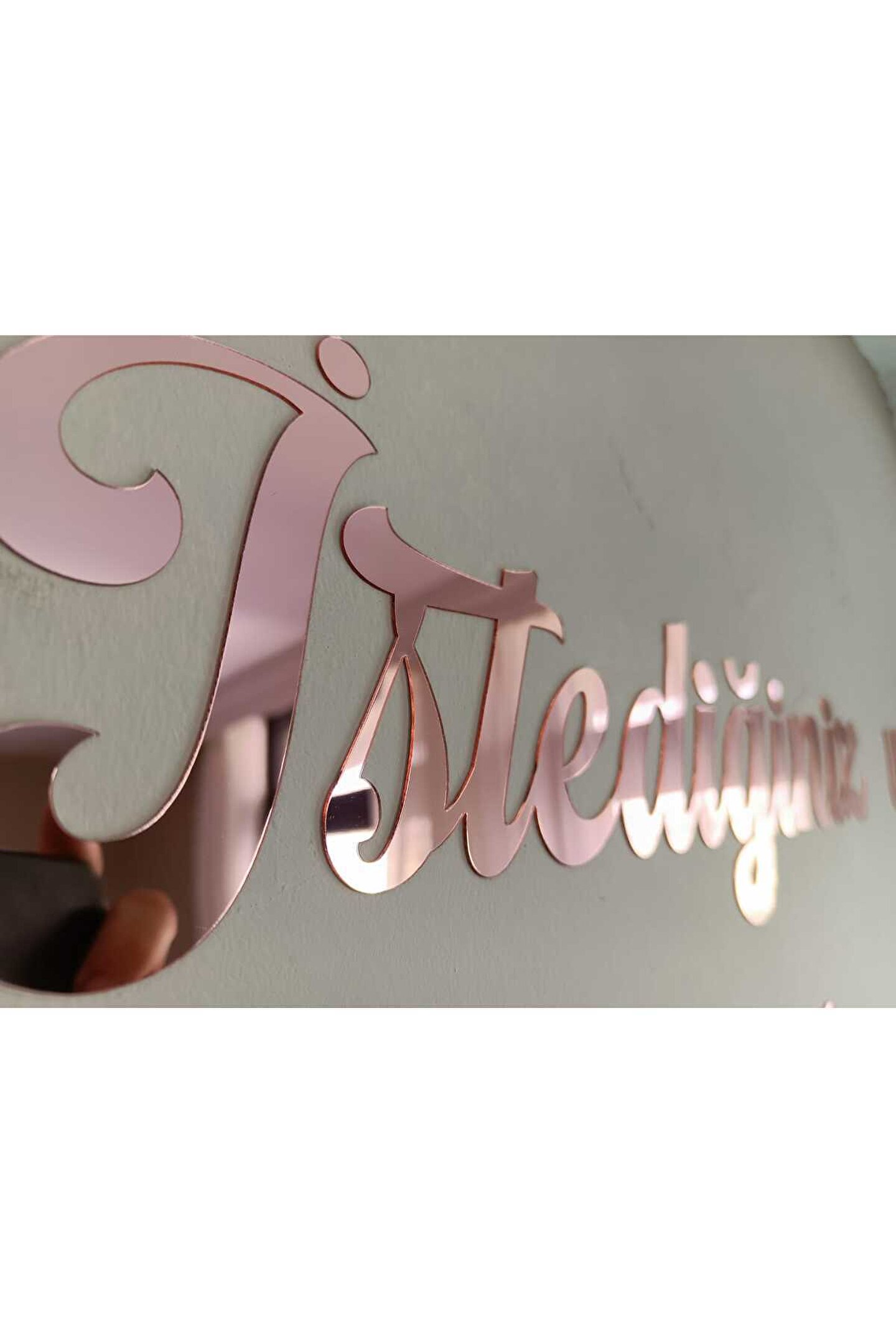 Ürünümüz 50 harf için geçerlidir.; Her 50 harfte 1 ürün almalısınız.; Küçük harfleri 1, Büyük harfleri de 3 saymalısınız.; Harf ölçüleri standarttır.; ölçüler ikinci resimde verilmiştir.; Ürünü satın aldıktan sonra ürün sorularından önce sipariş numaranızı ardından da yazdırmak istediğiniz yazıyı yazdırabilirsiniz.; Hiçbirşey belirtmezseniz resimdeki yazı stili ile gönderilir.; ama yazı tipini değiştirmek istiyorsanız lütfen bize ulaşın.; istediğiniz yazı tipi ismini belirtirseniz yardımcı oluruz.; FARKLI ÖLÇÜ VE EBATLAR İÇİN LÜTFEN BİZE ULAŞINIZ.; MARKA İSMİMİZİ İNTERNETTE ARATINCA İLETİŞİM BİLGİLERİMİZE ULAŞABİLİRSİNİZ.; İster kendi kelimeleriniz ister beğendiğiniz bir söz yada size ait bir şiiir olsun duvarınızda ya da bütün düz zeminlerde kullanabileceğiniz duvar yazınızı bize bildirin biz üretelim Hiçkimsede olmayan duvar dekorunuz olsun Size özel duvar yazınız ayağınıza gelsin :) 1 mm ROSE GOLD renk kendinden yapışkanlı aynalı pleksi malzeme ile Leylaser tarafından üretilmiştir.; Direk bantın korumasını çıkartıp duvara monte edebilirsiniz.; ; Her kelime ayrı bir parça olarak gelecektir.; ; İstediğiniz şekilde kombin edebilirsiniz.; ; Yazdırmak istediğiniz metni satıcı sorularından ya da ürün sorularından sipariş numaranızla birlikte bildirebilirsiniz.; ; Yazdırmak istediğiniz metinde yer alan harf sayısına göre fiyatlandırma yapılmaktadır.