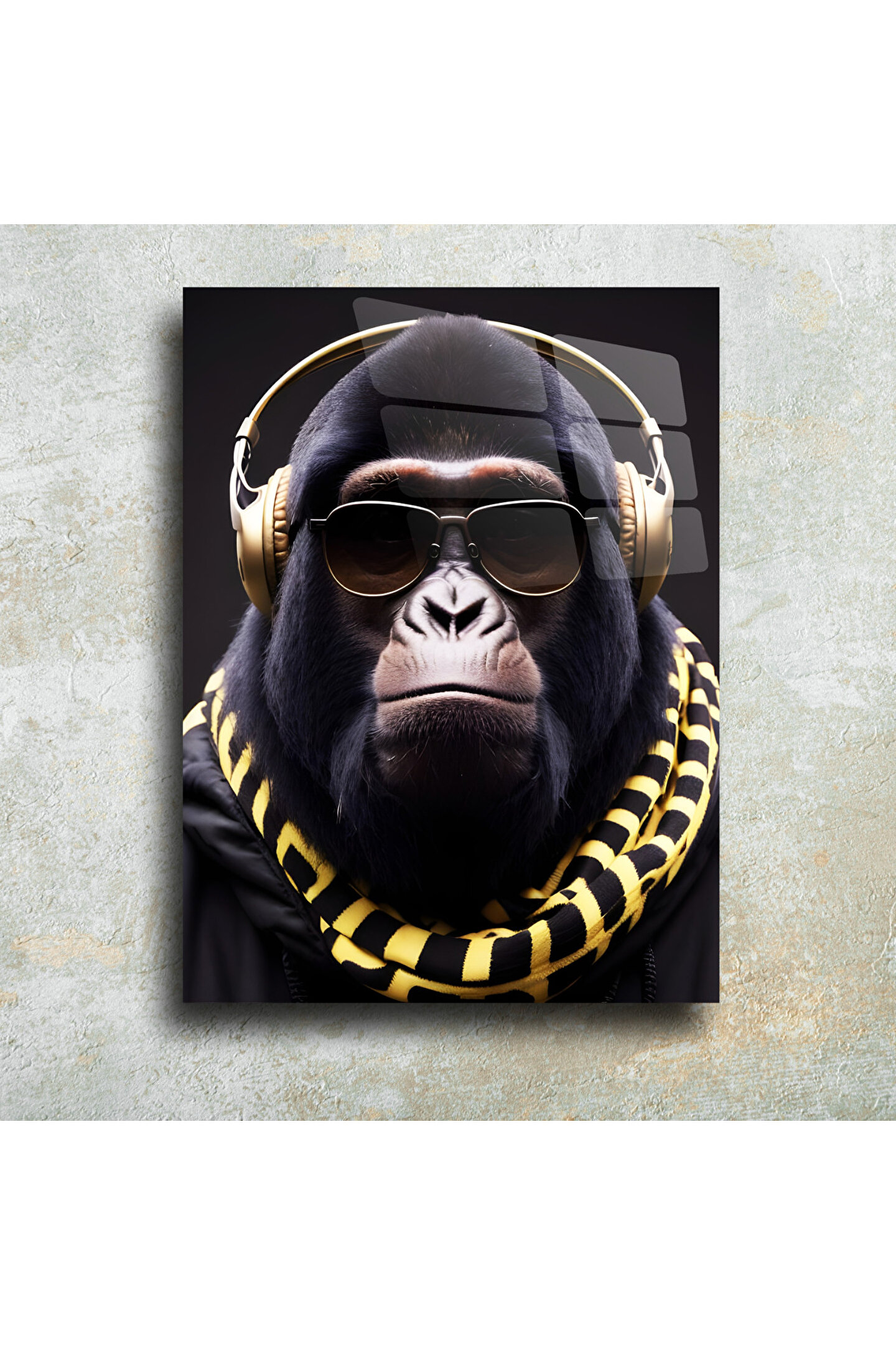 LEYLASER Kulaklıklı Goril Cam Tablo Duvar Dekoru