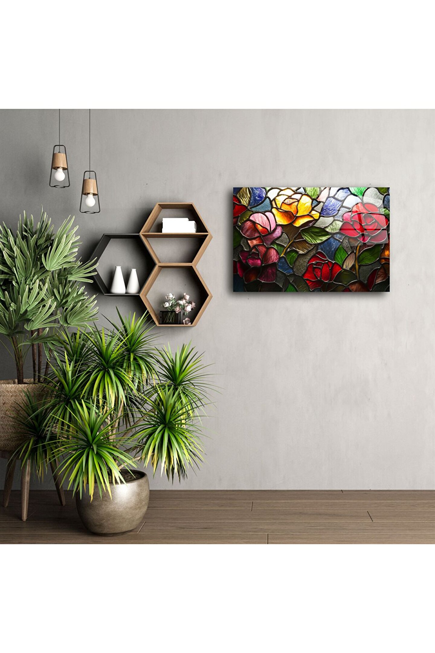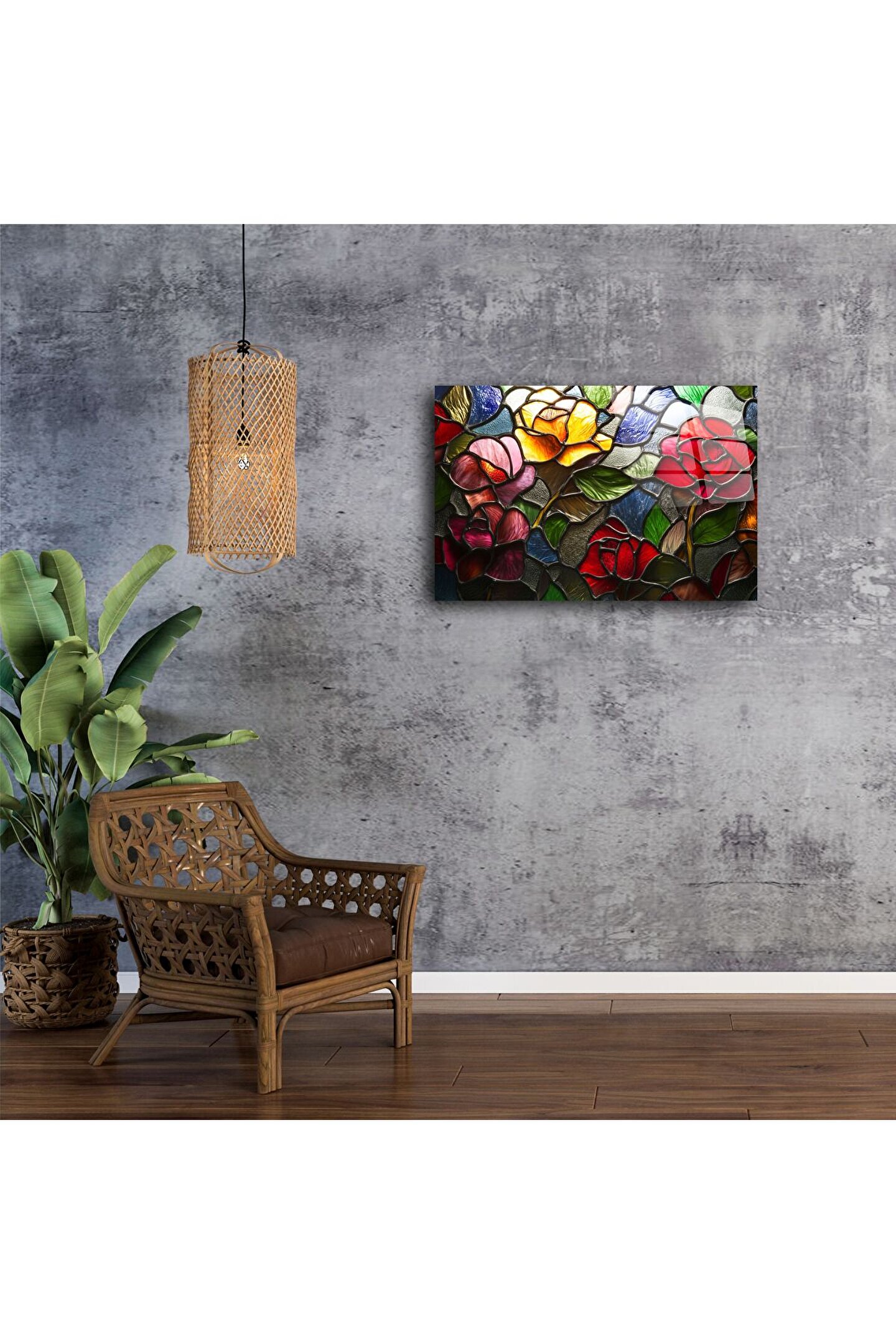 LEYLASER Lüks Renkli Vitray Gül Tablo