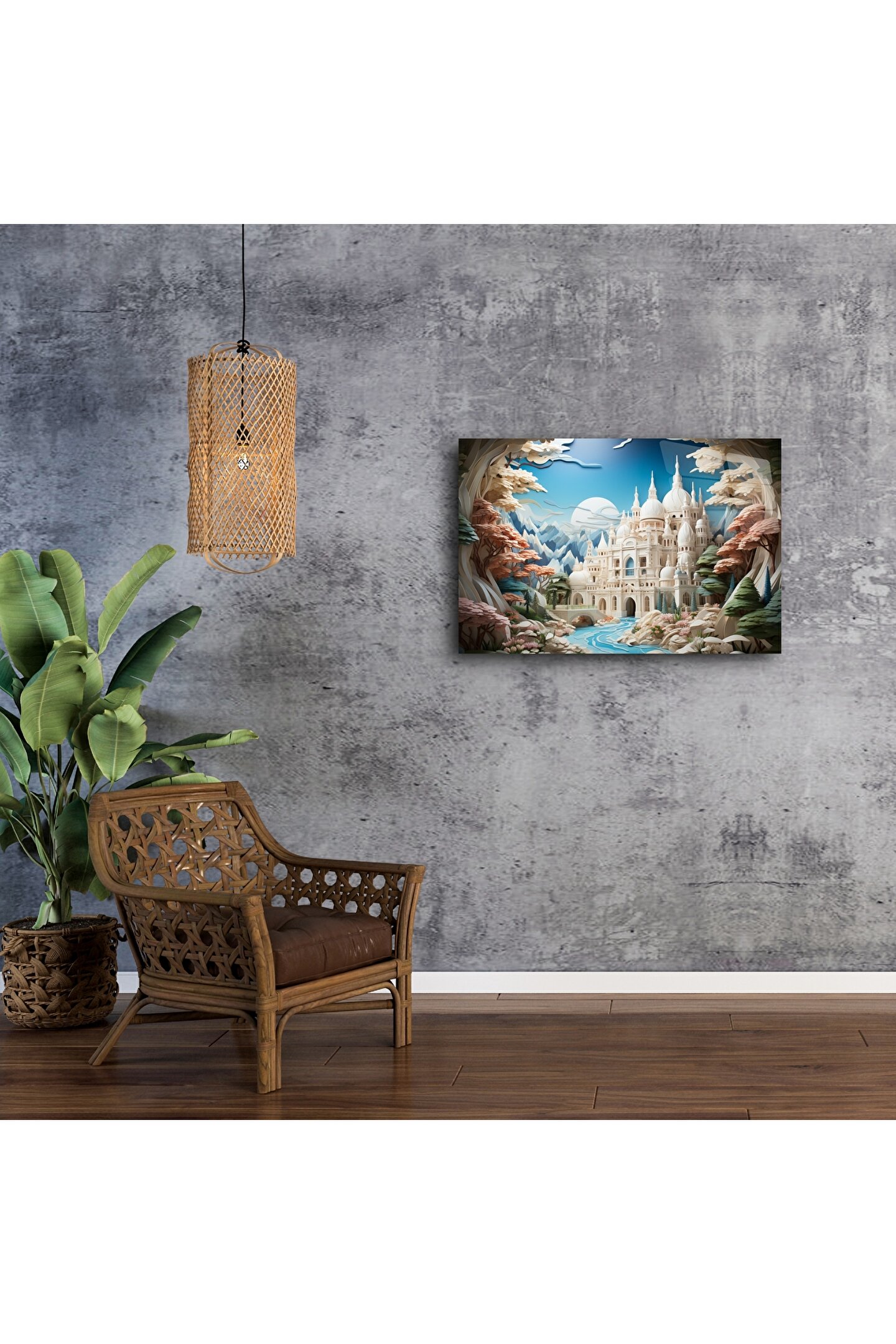 Soyut Şato Manzaralı Duvar Posteri, hayal gücünü harekete geçiren zarif detaylarla tasarlanmış büyüleyici bir dijital sanat eseridir. Büyülü bir vadinin kalbinde yer alan bu fantastik saray, pastel ve canlı tonların zarif birleşimiyle evinize masalsı bir hava katar.