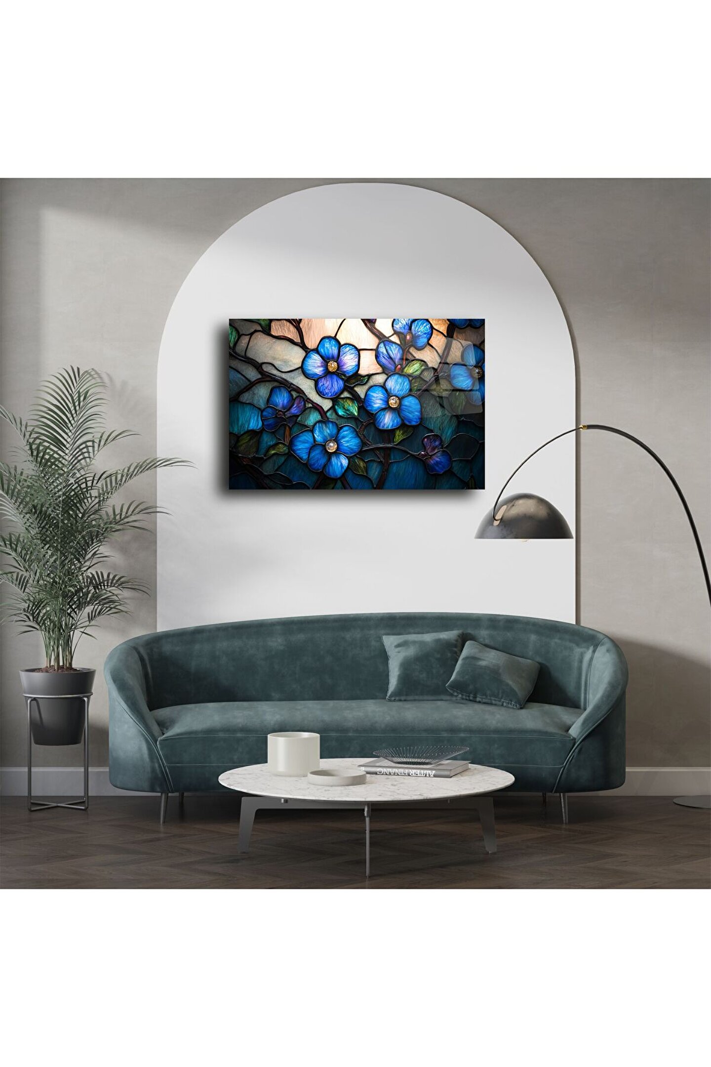 Zarif çizgileri ve canlı mavi tonlarıyla dikkat çeken bu vitray cam tablo, doğanın huzurunu duvarlarınıza taşır. Işığın dans ettiği cam yüzeyde, çiçek detayları 3 boyutlu etkisiyle derinleşir ve sanatı adeta canlı bir deneyime dönüştürür.