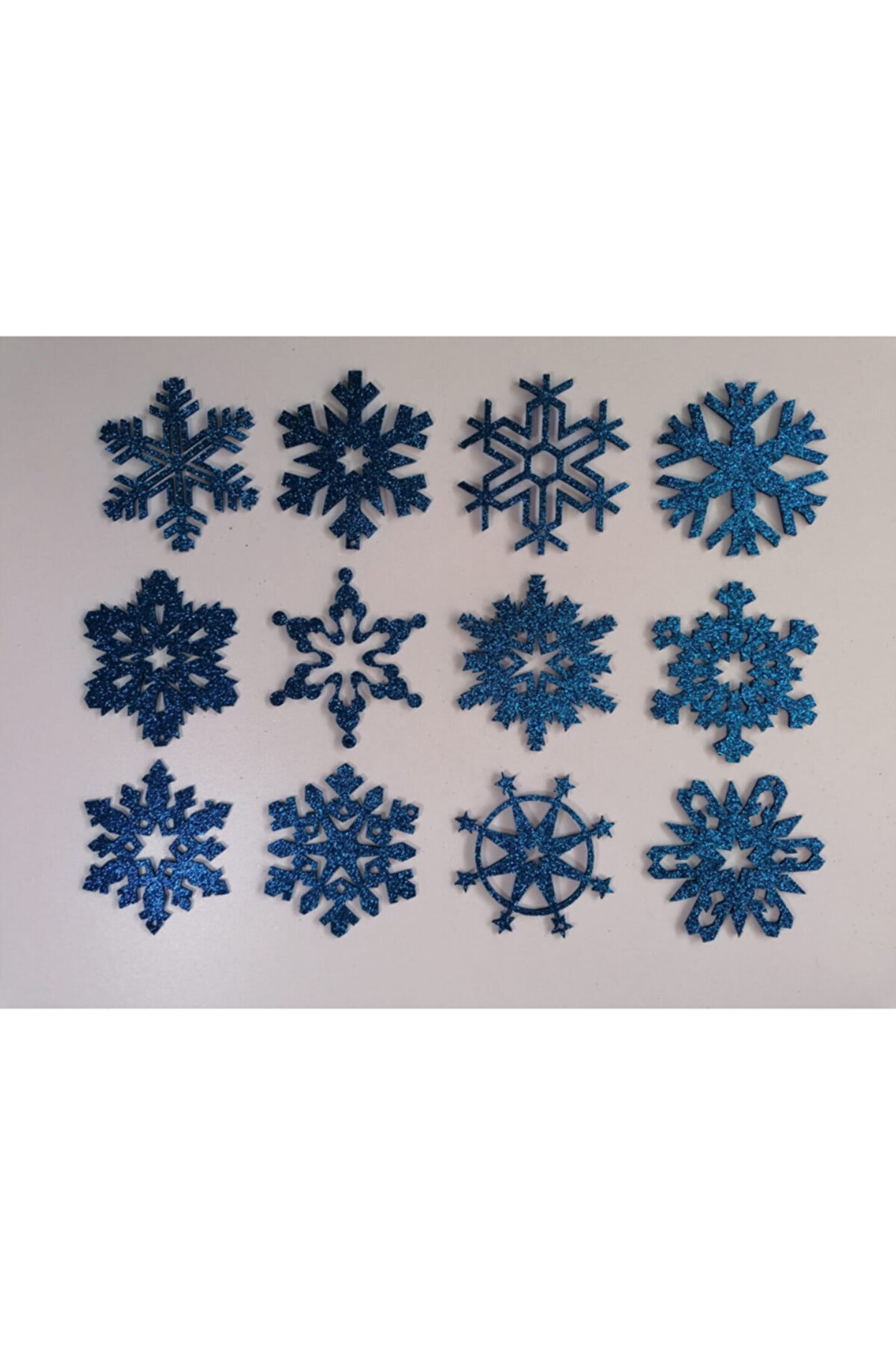 2 mm Simli Eva dan üretilmiştir. ; 28 adet farklı kar tanesi içinden 12 farklı desende kar tanesi gönderilecektir. ; Resimdeki görsel ile birebir eşleşme sağlanmayabilir. ; Simli iple birlikte gönderilecektir.;