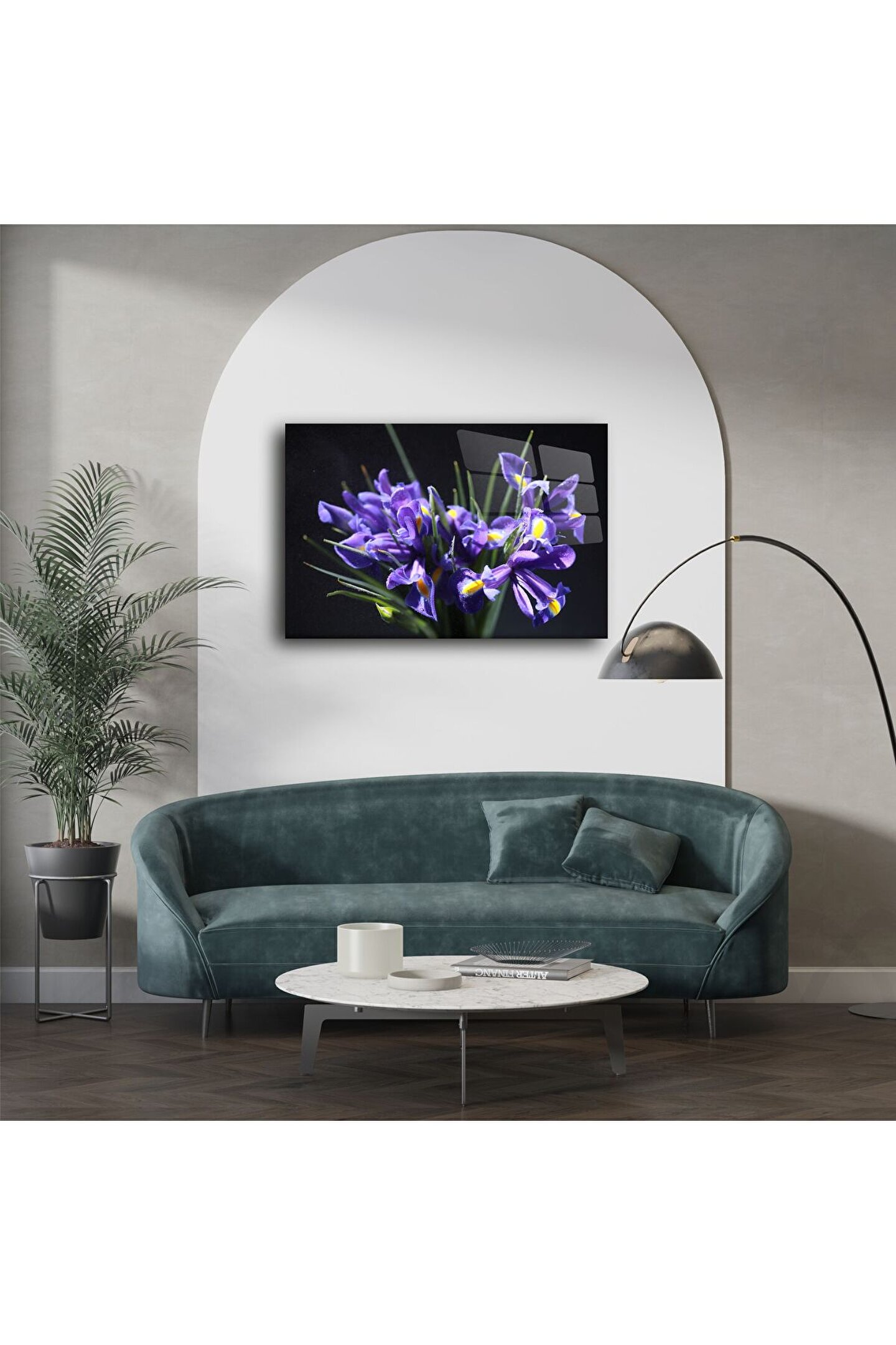 LEYLASER Mor İris Çiçeği Cam Tablo