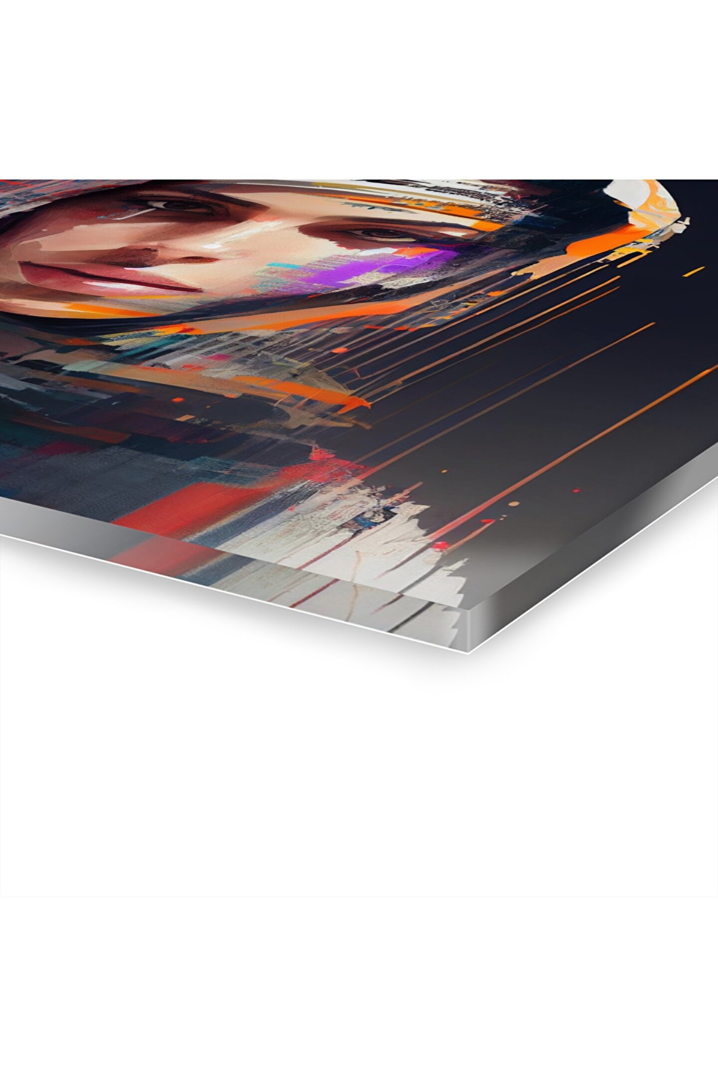 LEYLASER Müslüman Kız Sulu Boya Türban Başörtüsü İslam Cam Tablo Duvar Dekoru
