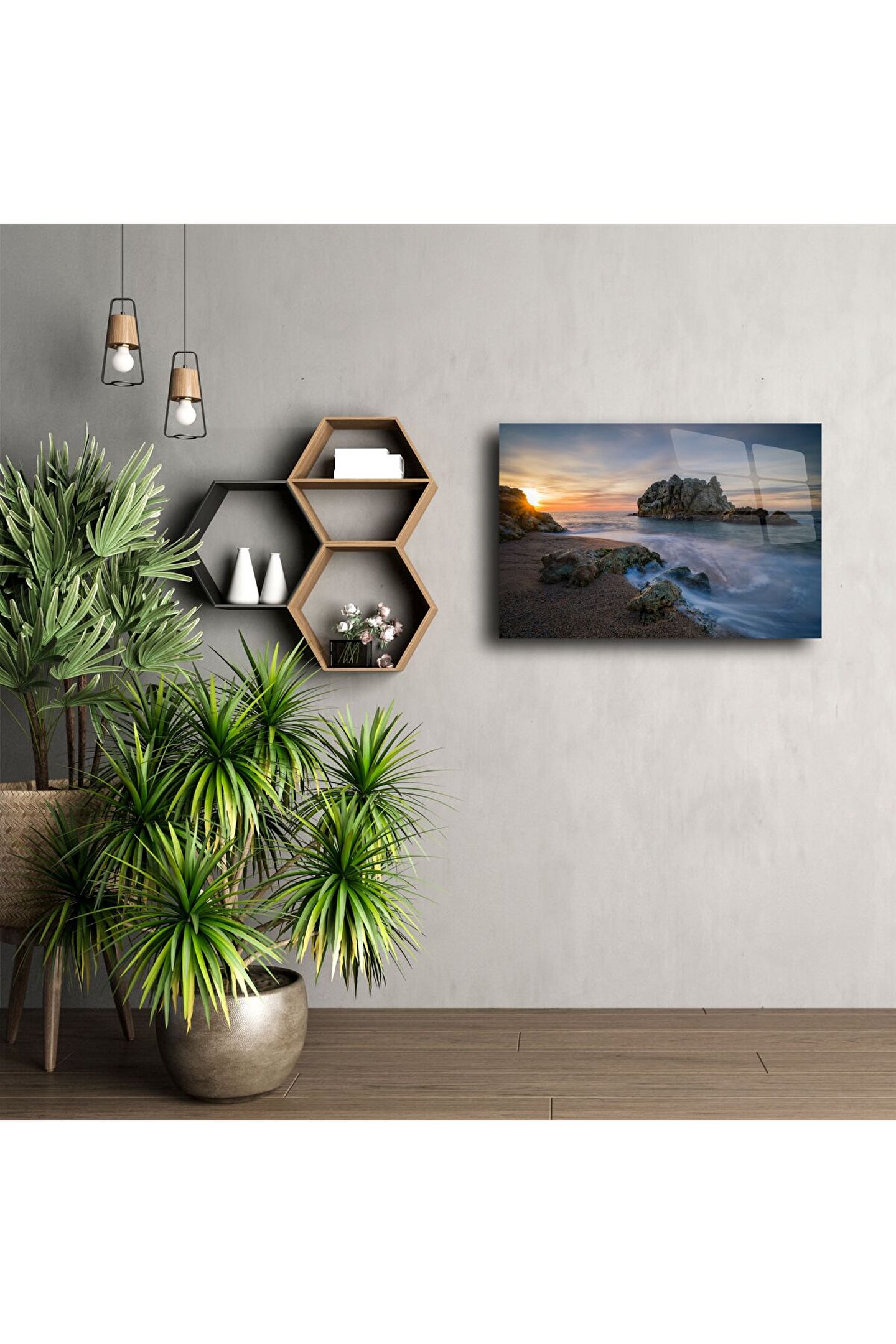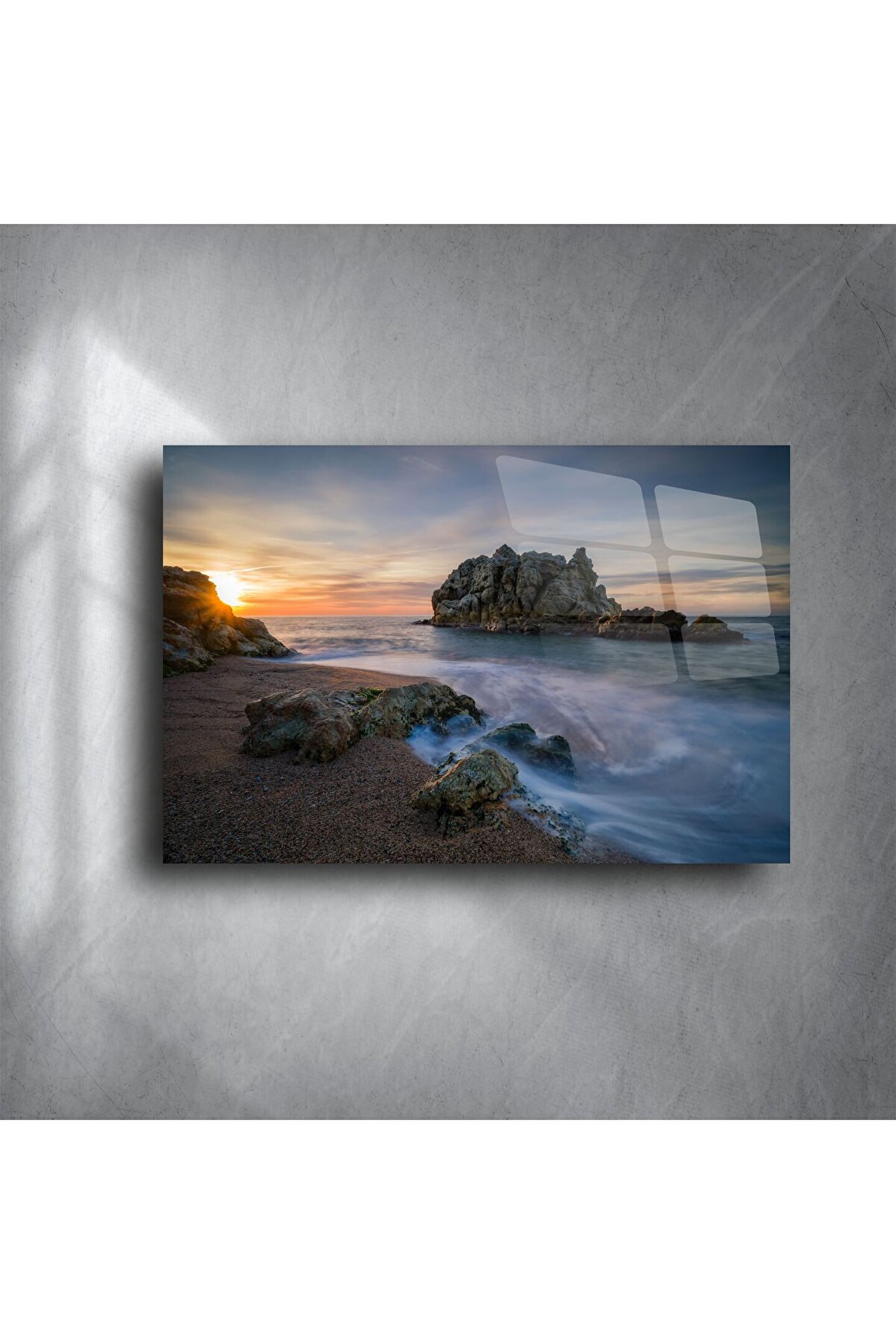 Doğanın sade ama etkileyici anlarını sevenler için tasarlanmış bu sanat eseri, zarafet ve huzuru evinize taşır. Camın yüksek parlaklığı ve netliği; yumuşak su yansımalarını ve gün ışığının kayalıklardaki dansını göz alıcı şekilde ortaya çıkarır. Bu sadece bir dekor değil — duygusal bir kaçış noktasıdır.