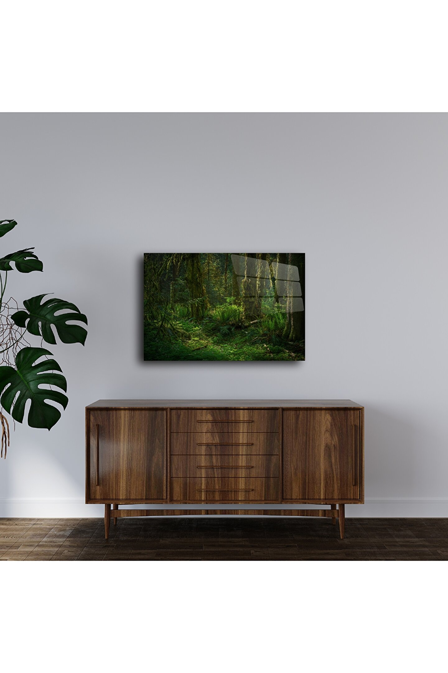 LEYLASER Orman Manzaralı Yeşil Cam Tablo