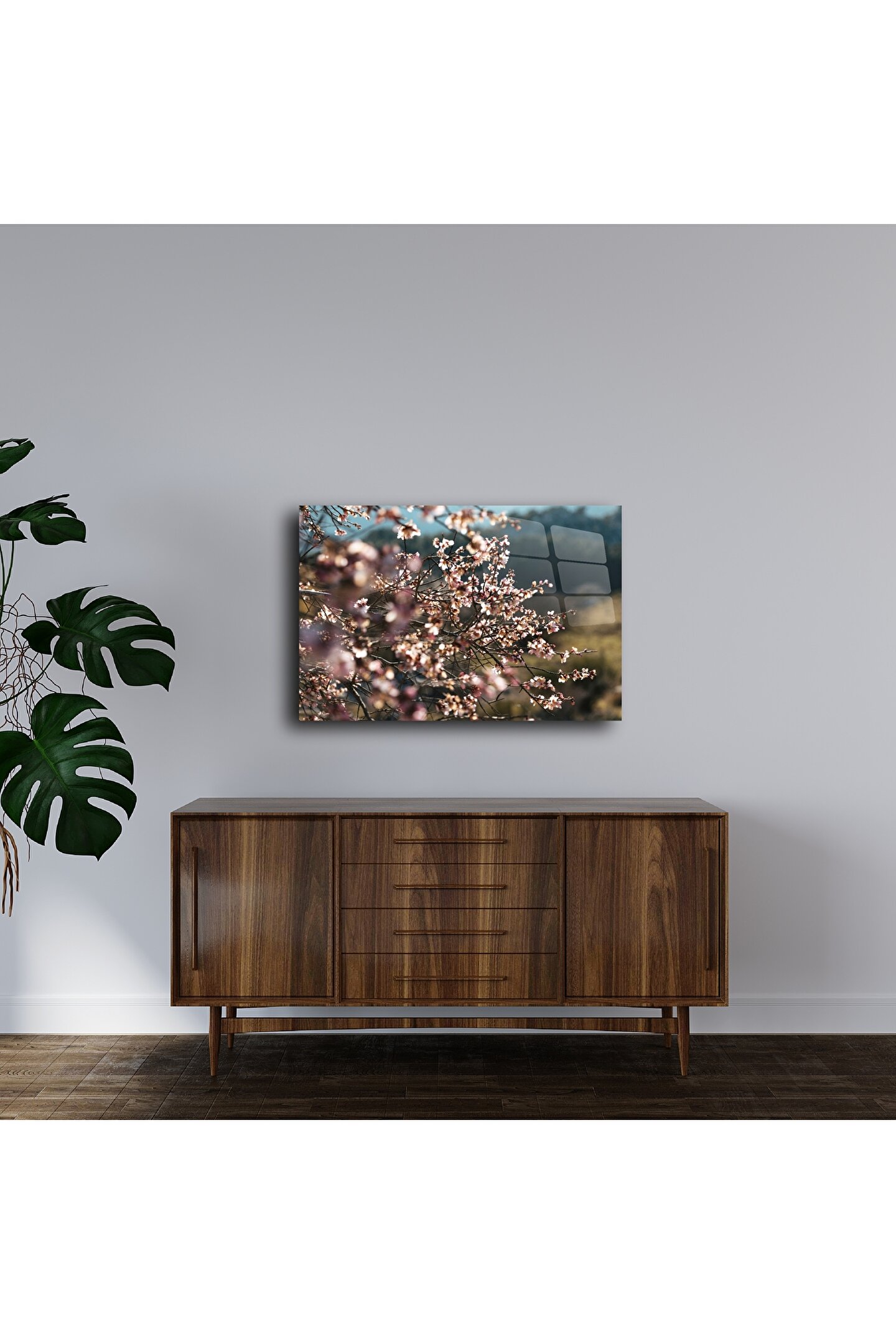 LEYLASER Pastoral Çiçekli Cam Tablo