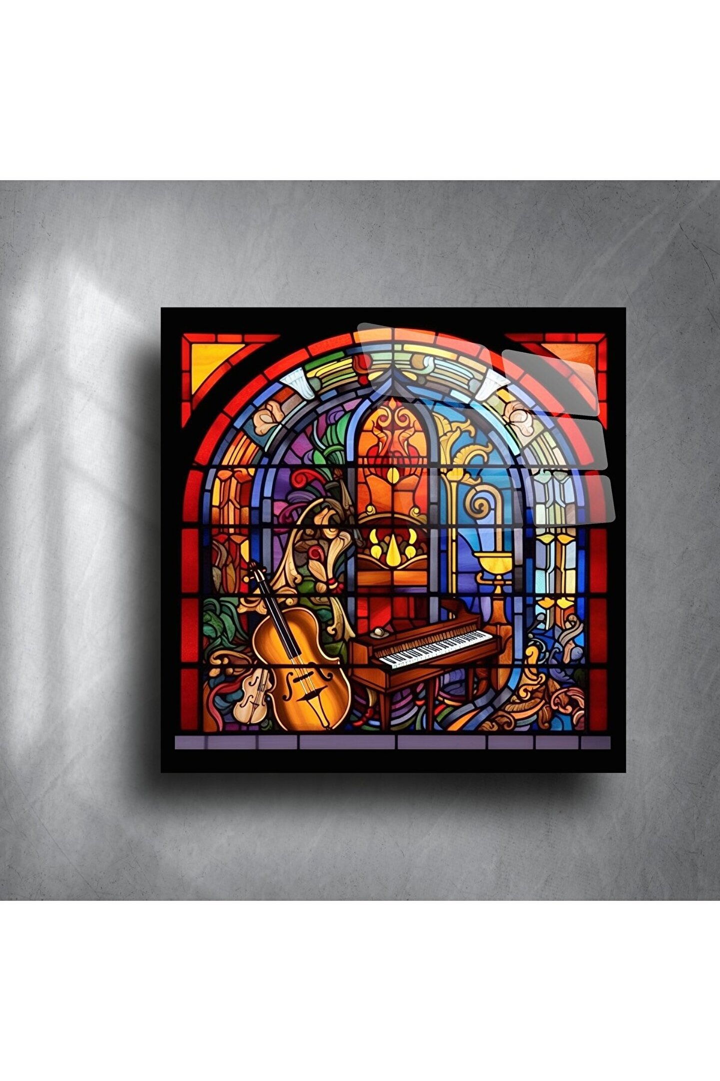 LEYLASER Piyano ve Viyolonselli Renkli Vitray Duvar Sanatı