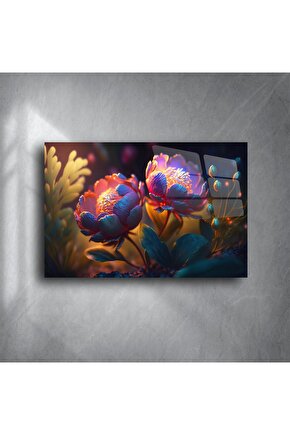 LEYLASER Premium Cam Tablo Renkli Çiçekler