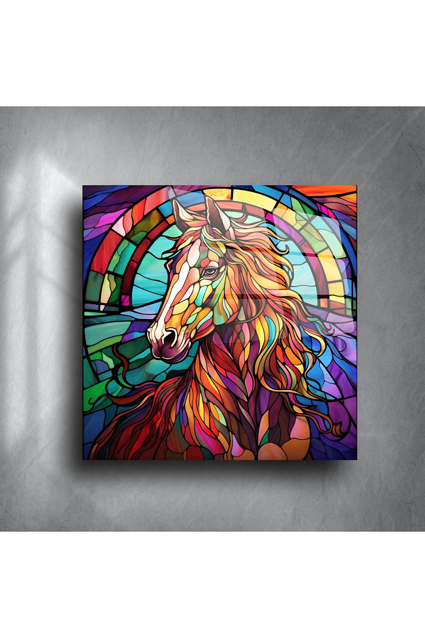 Sanatı tutkuyla hissettiren bu "Renkli At" cam tablo, cam üzerine baskılanmış vitray tarzı tasarımıyla evinizin odak noktası olmaya aday. Güç ve özgürlüğü temsil eden at figürü, göz alıcı renk paletiyle modern yaşam alanlarına estetik ve ruh katıyor.