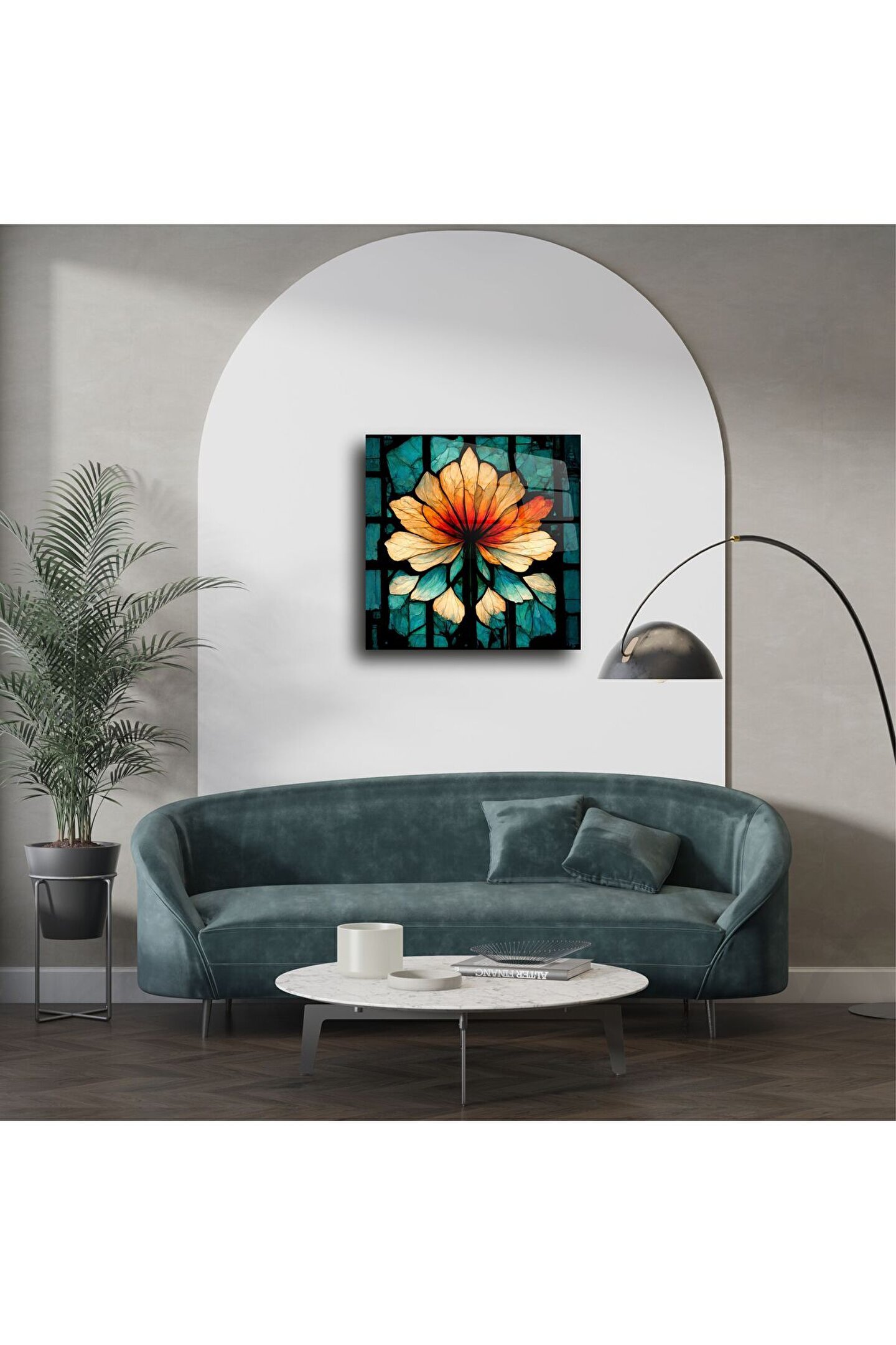 LEYLASER Renkli Cam Mozaik Çiçek Tablosu