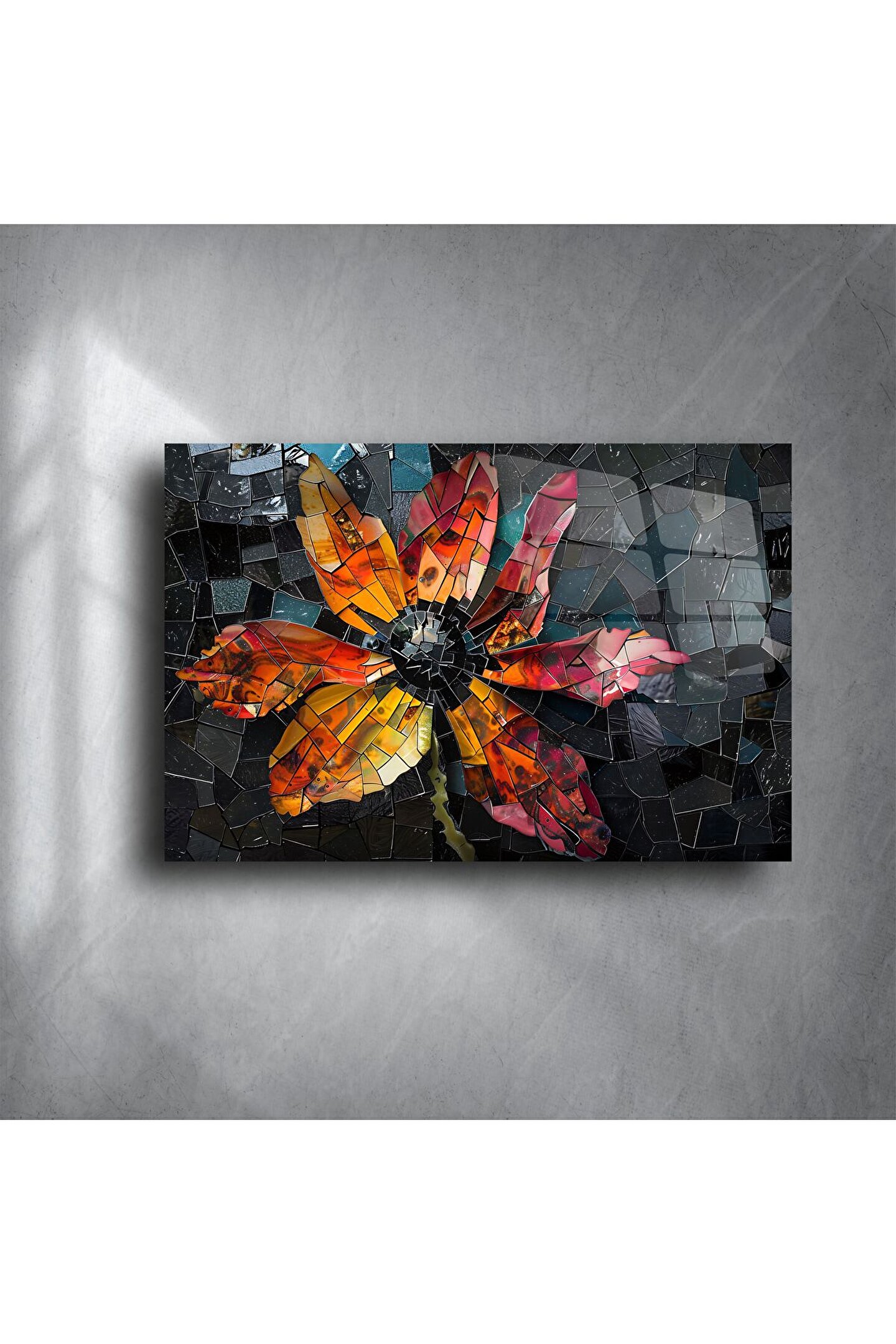 LEYLASER Renkli Çiçek Desenli Mozaik Cam Tablo