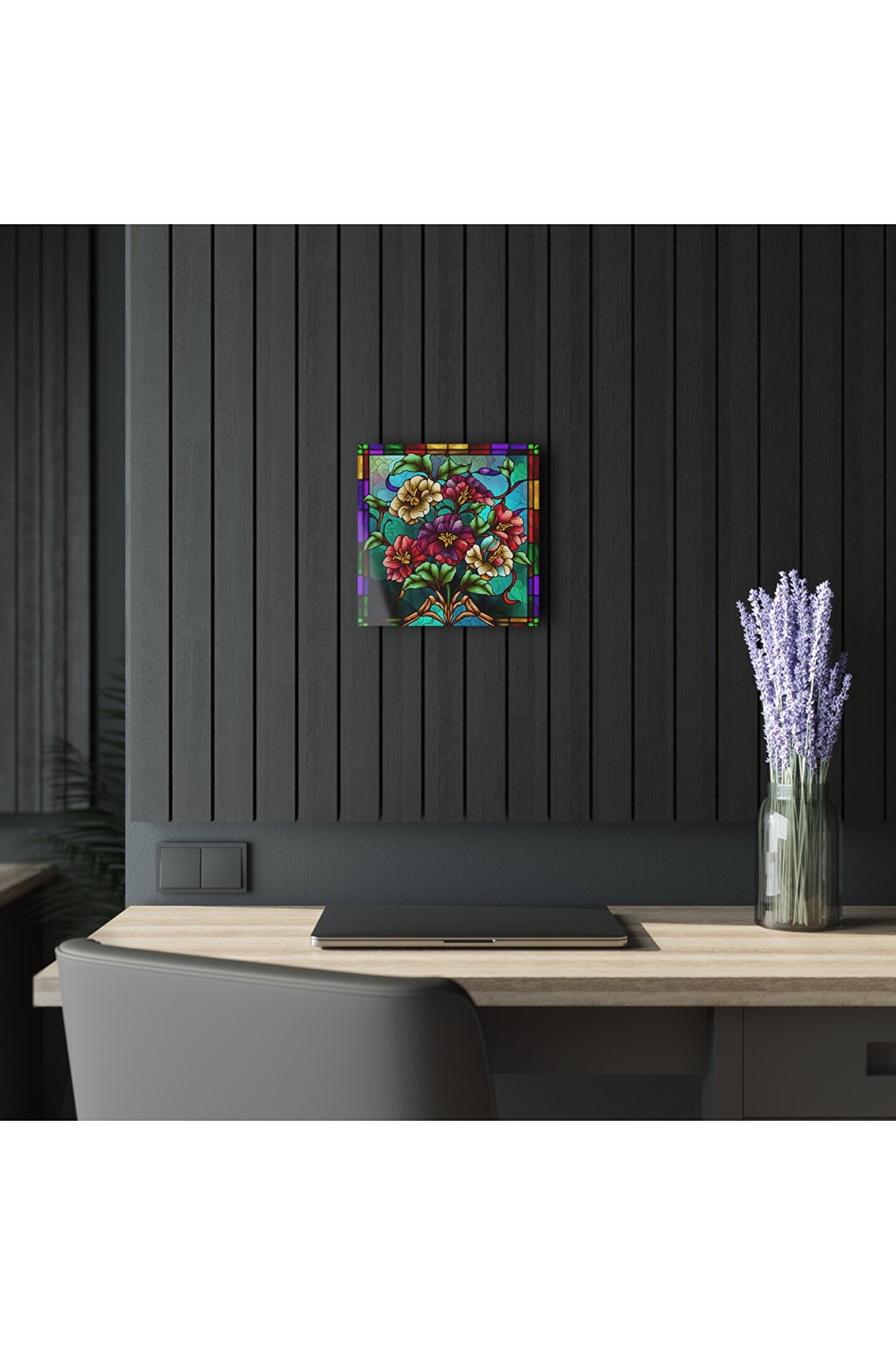 LEYLASER Renkli Çiçekler Cam Tablo Duvar Dekoru 2