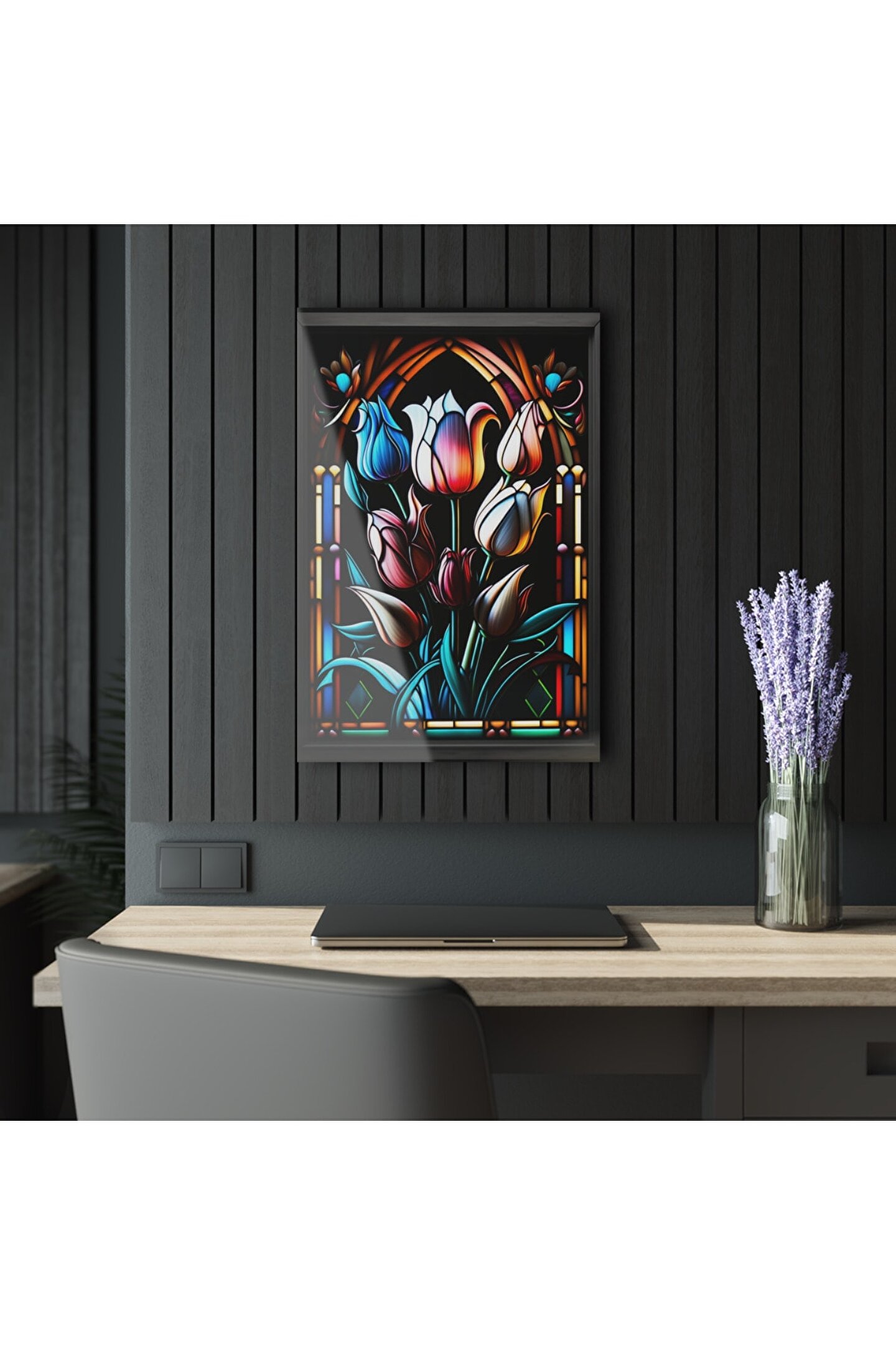 LEYLASER Renkli Lale Cam Tablo Duvar Dekoru
