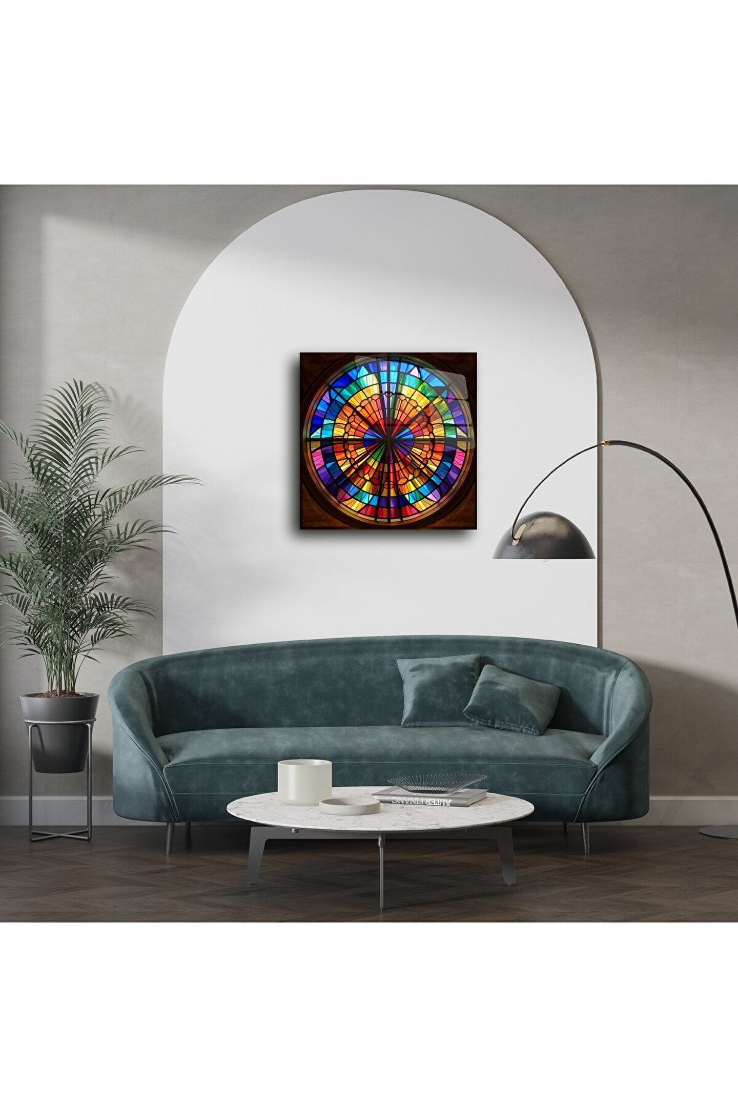Bu etkileyici Vitray Desenli Cam Duvar Tablosu, dairesel mandala yapısı ve rengârenk cam efektli tasarımıyla yaşam alanlarınıza ruh katıyor. Tıpkı klasik vitray pencerelerin ışıkla dansı gibi, bu tasarım da modern iç mekanlara enerji, uyum ve görsel şölen kazandırıyor.