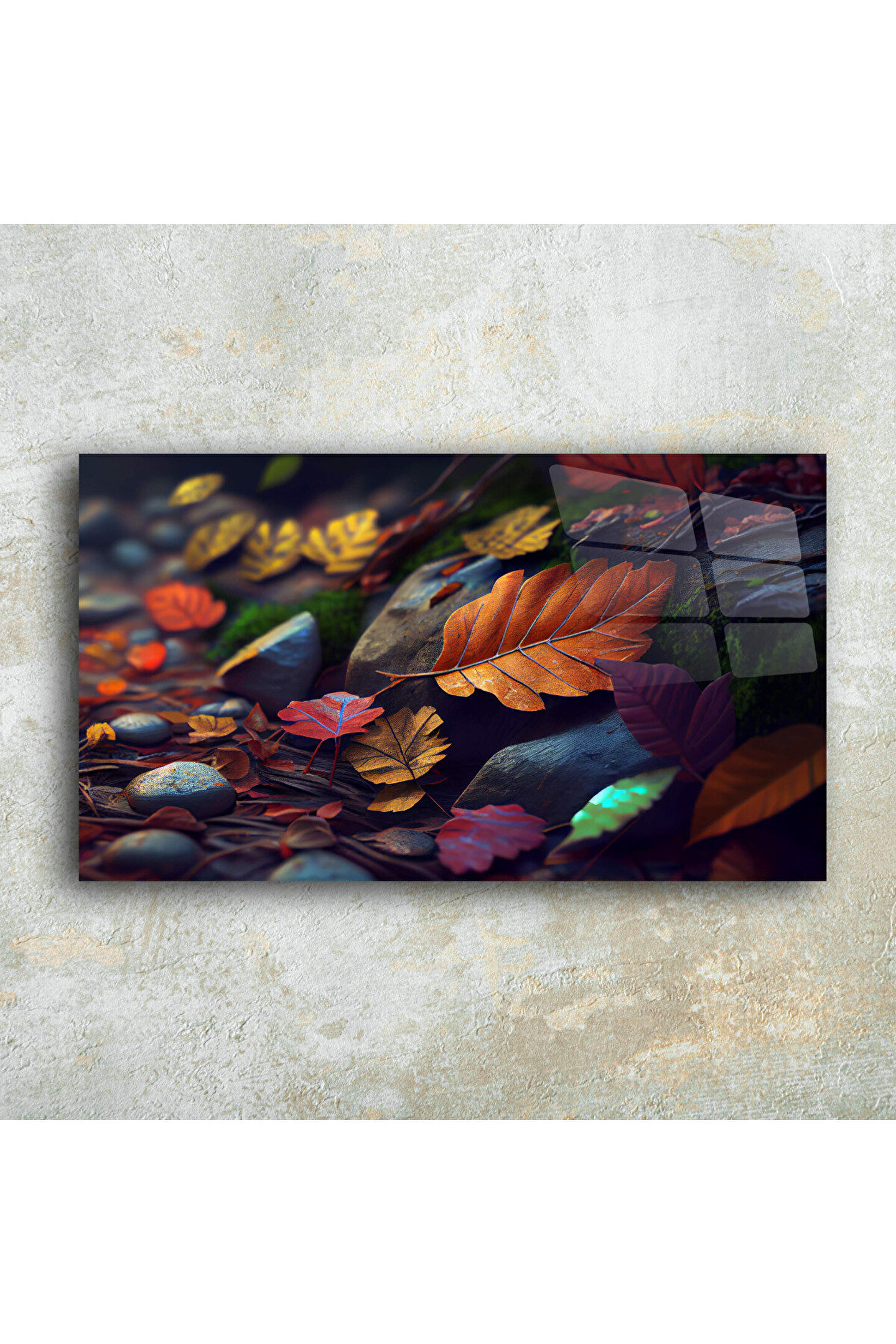 LEYLASER Renkli Yapraklar ve Taşlar Cam Tablo Duvar Dekoru