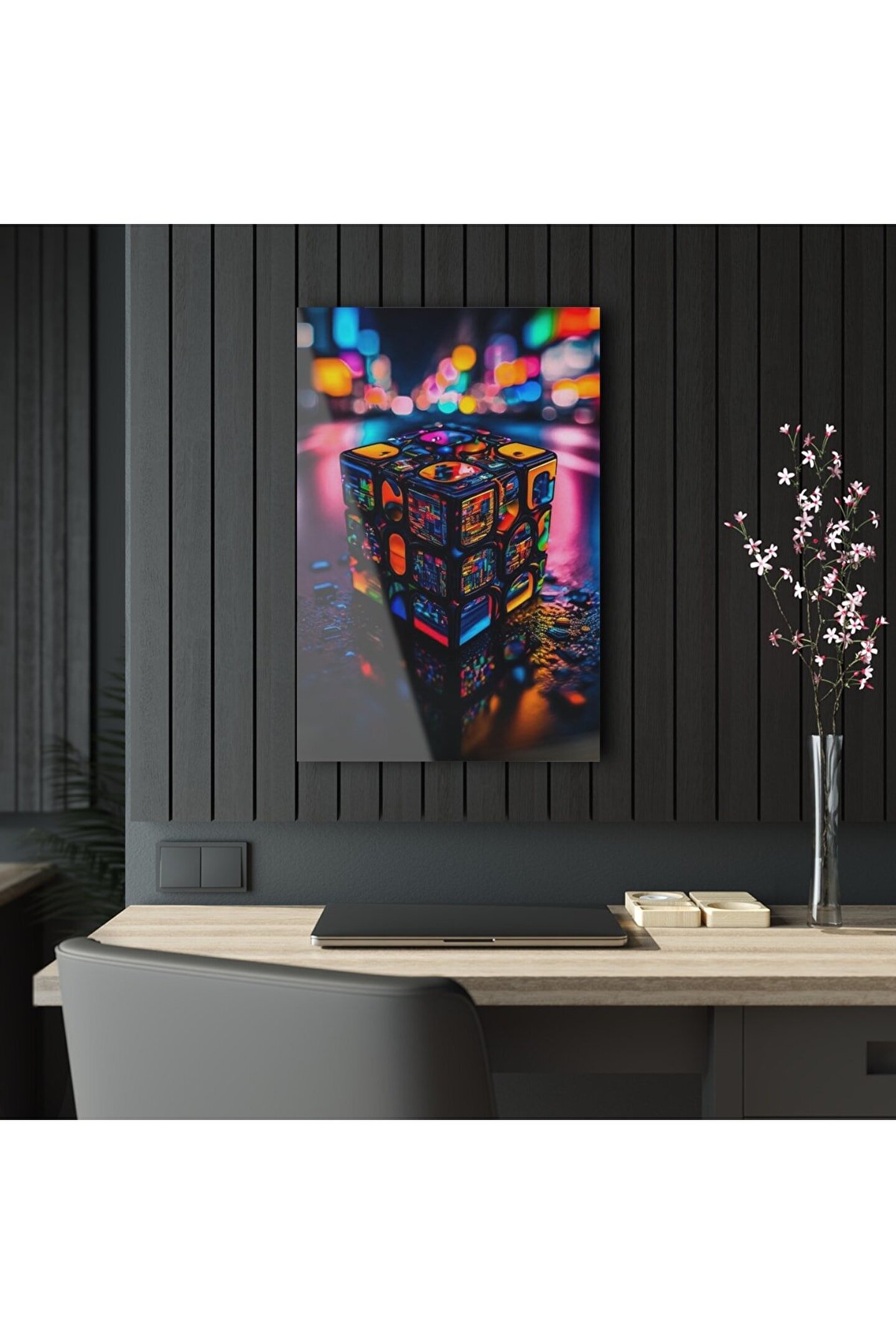 LEYLASER Rubik Küp Cam Tablo Duvar Dekoru