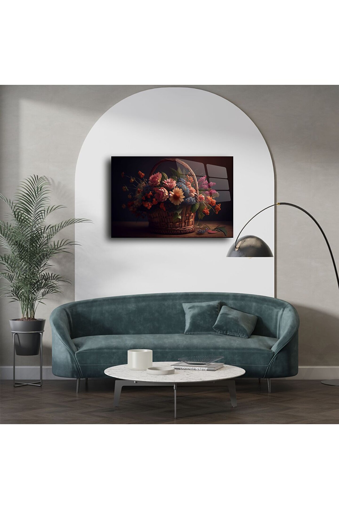 Rustik sepetli yapay çiçek aranjmanı baskısı, romantik bir zarafet ve pastoral bir sıcaklık sunarak yaşam alanınıza büyüleyici bir dokunuş katıyor. El yapımı gibi hissettiren bu tablo, vintage tarzı ve doğal pastel renkleriyle dinginlik ve nostalji arayan ruhlara hitap eder.