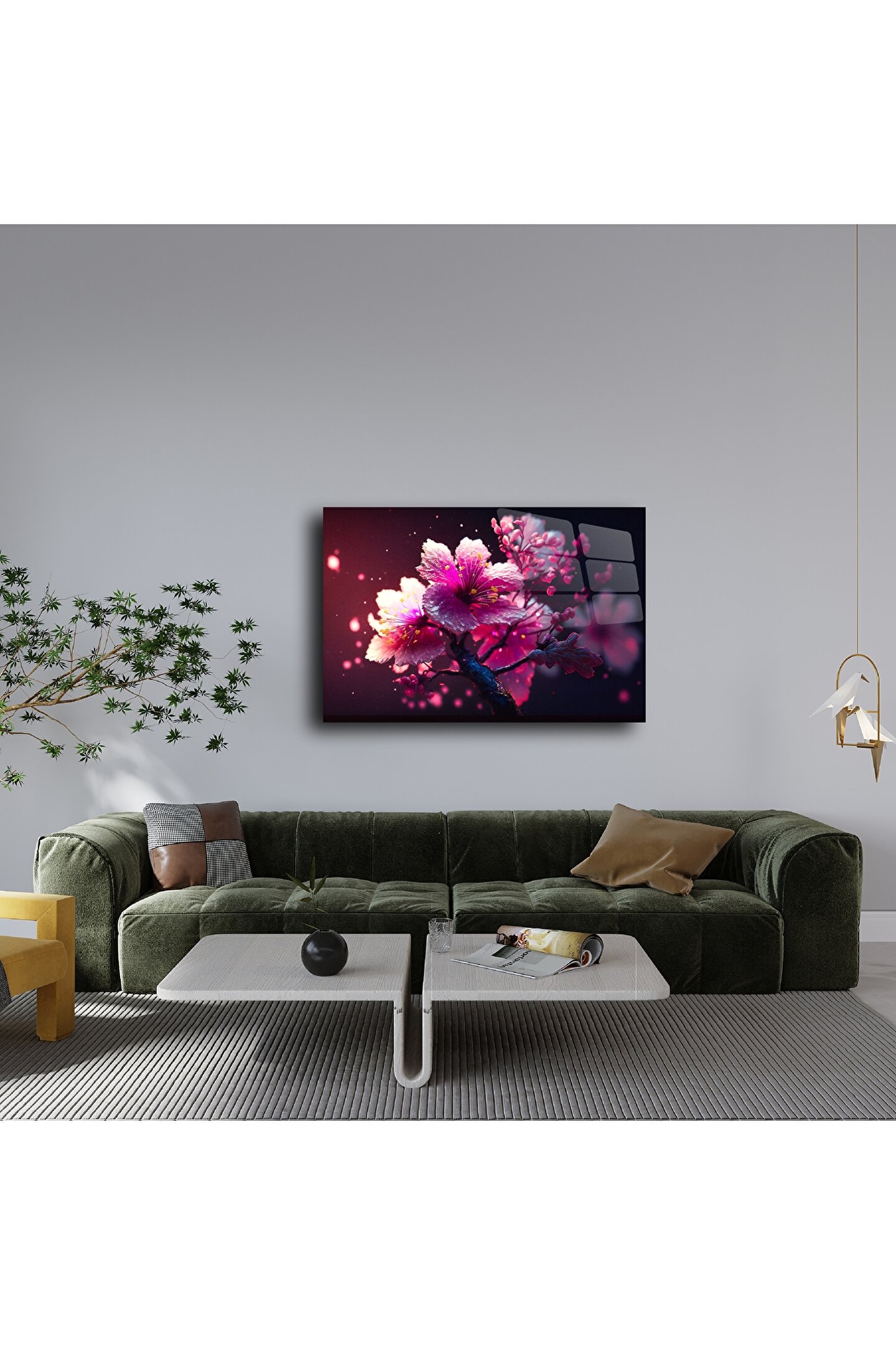 Duygusal bir sakinlik hissi yaratmak için tasarlanmış bu çiçekli tablo, doğum günü, yıldönümü, yeni ev hediyesi veya moral vermek için anlamlı bir tercihtir. Salonlar, meditasyon köşeleri veya minimal yatak odaları için idealdir.