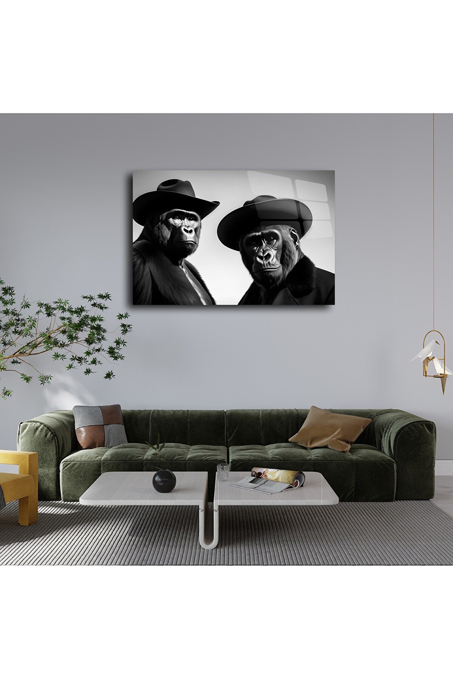 LEYLASER Şapkalı Goril Cam Tablo Duvar Dekoru