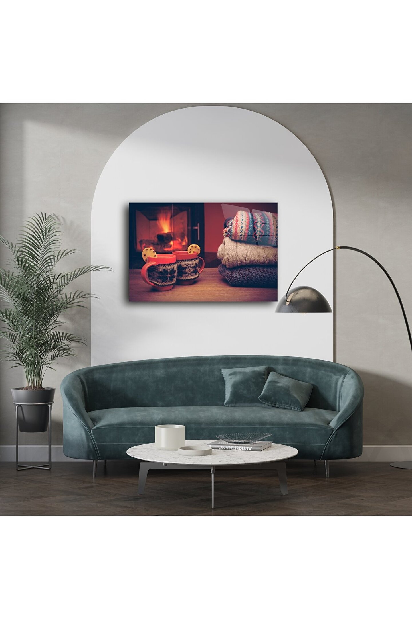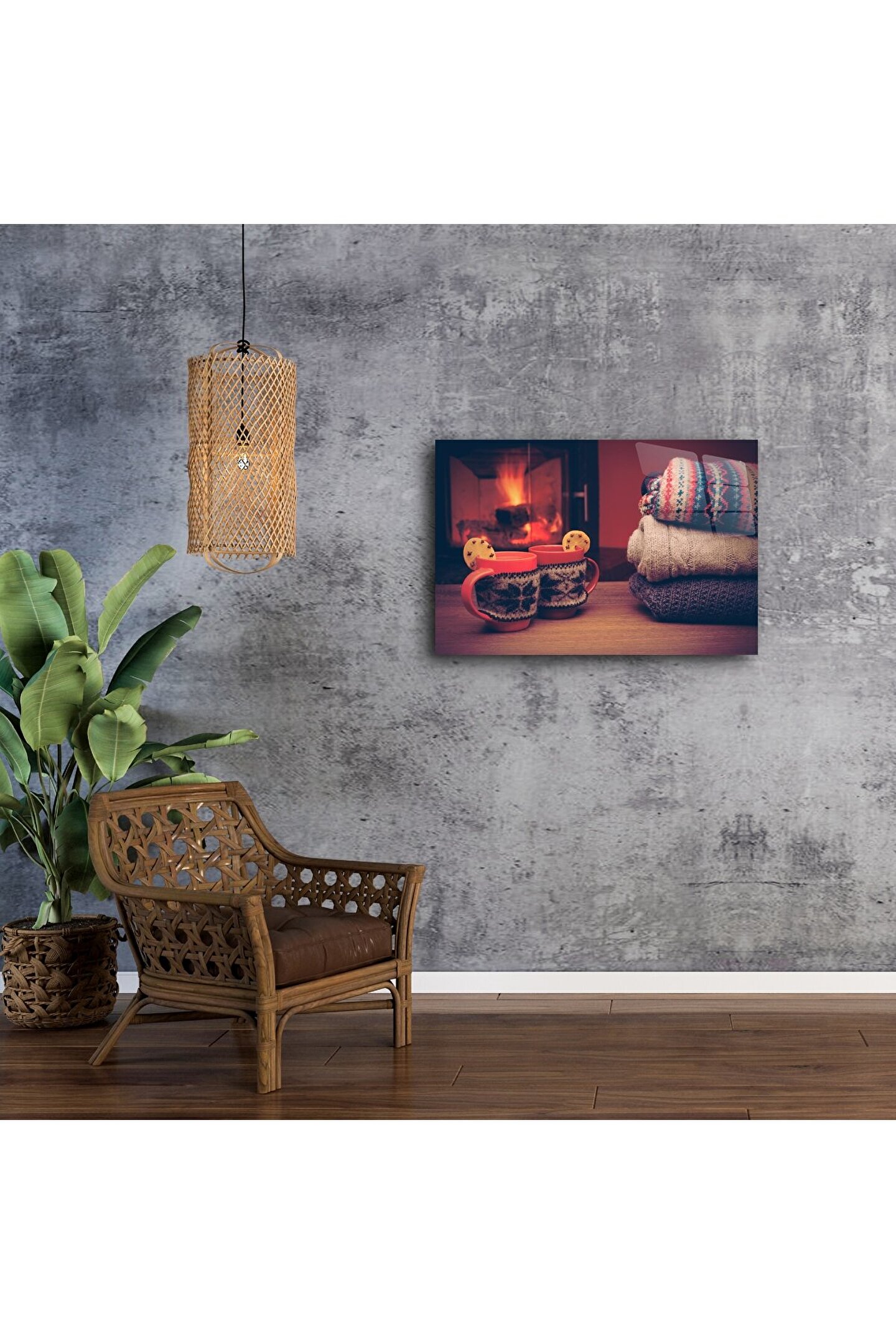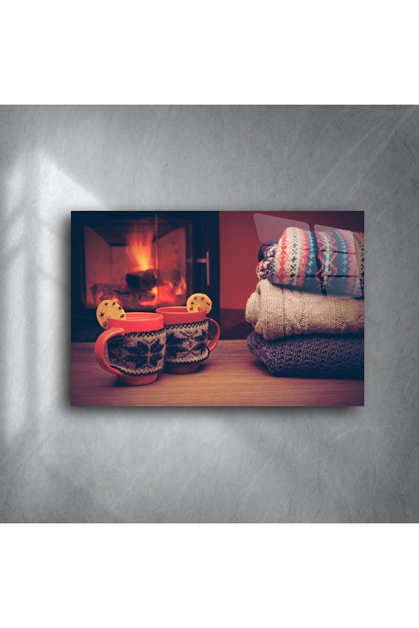 Ev sıcaklığını duvarınıza taşıyan bu kış temalı cam tablo, desenli kazaklar, sıcak içecekler ve yanmakta olan şöminenin huzurunu bir araya getiriyor. Cam üzerine yüksek çözünürlüklü baskı tekniğiyle hazırlanan bu tasarım, soğuk günlerde iç ısıtan bir atmosfer yaratmak isteyenler için birebir. Sıcacık bir içecek eşliğinde huzuru hissetmek isteyenler için ideal bir seçim.