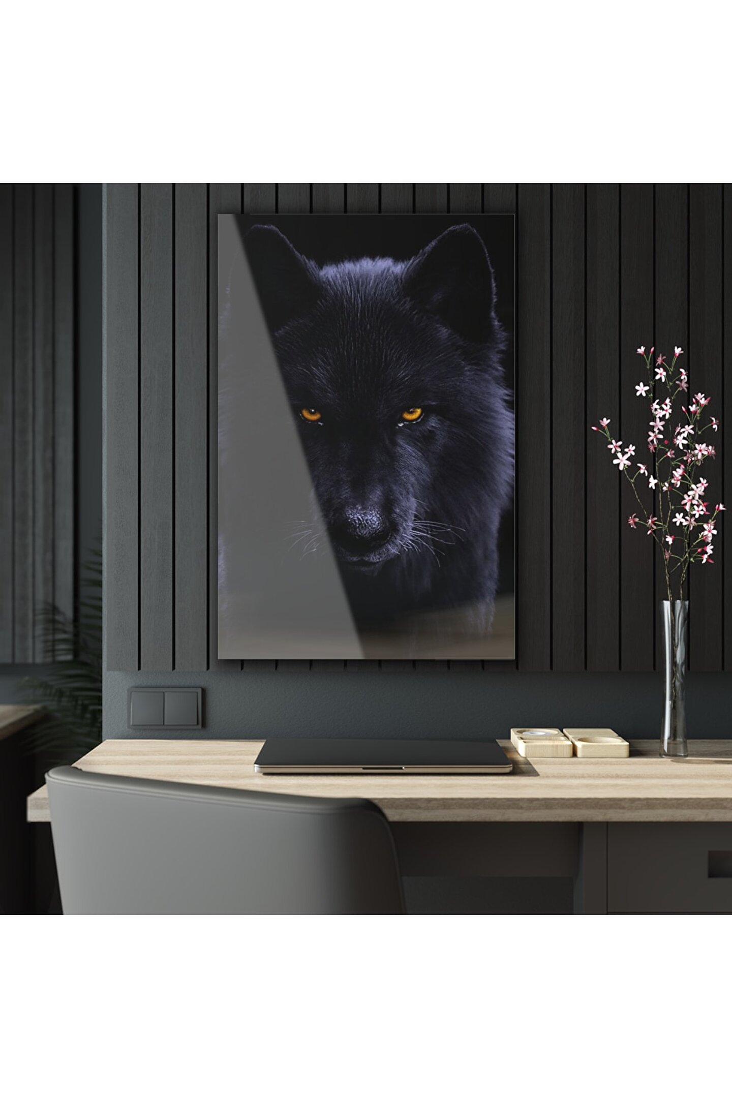 LEYLASER Siyah Kurt Cam Tablo Duvar Dekoru