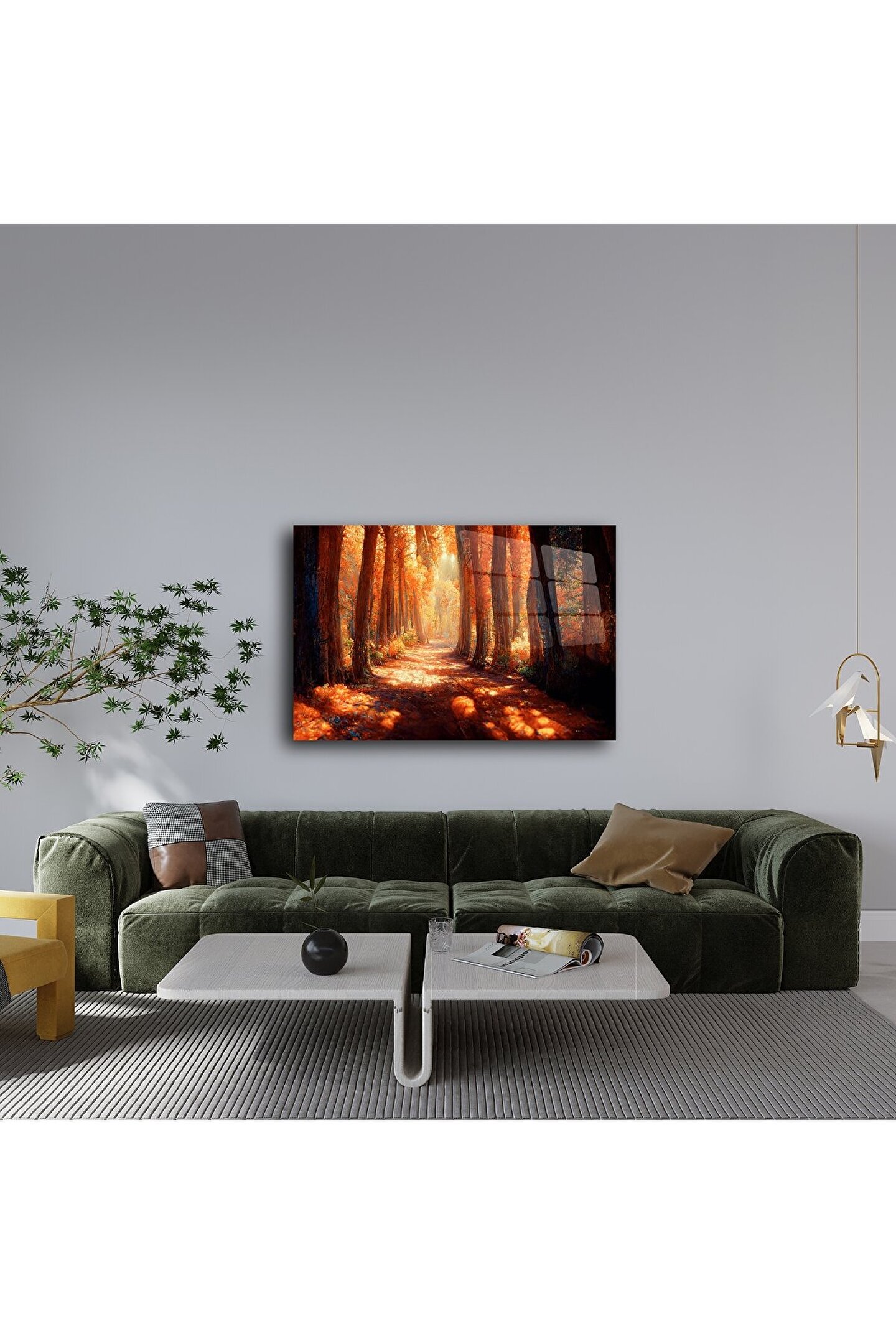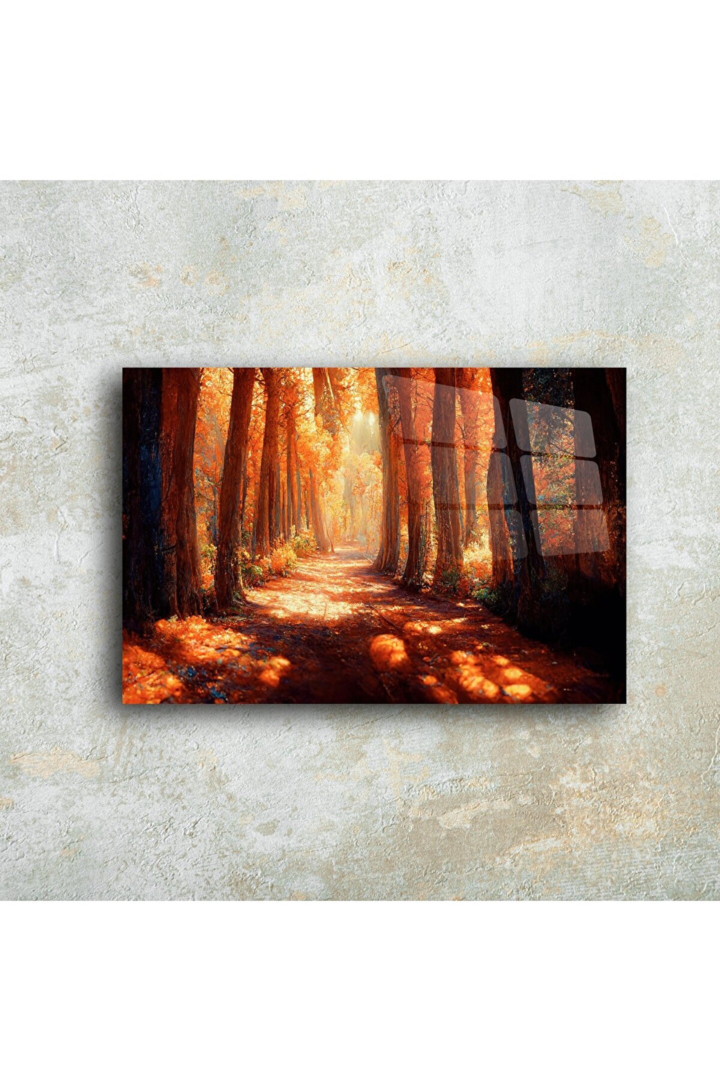 LEYLASER Sonbahar Orman Yolu Temalı Cam Duvar Tablosu