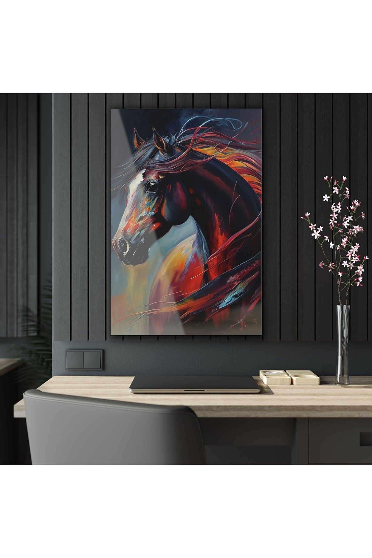 LEYLASER Suluboya Efektli At Cam Tablo Duvar Dekoru