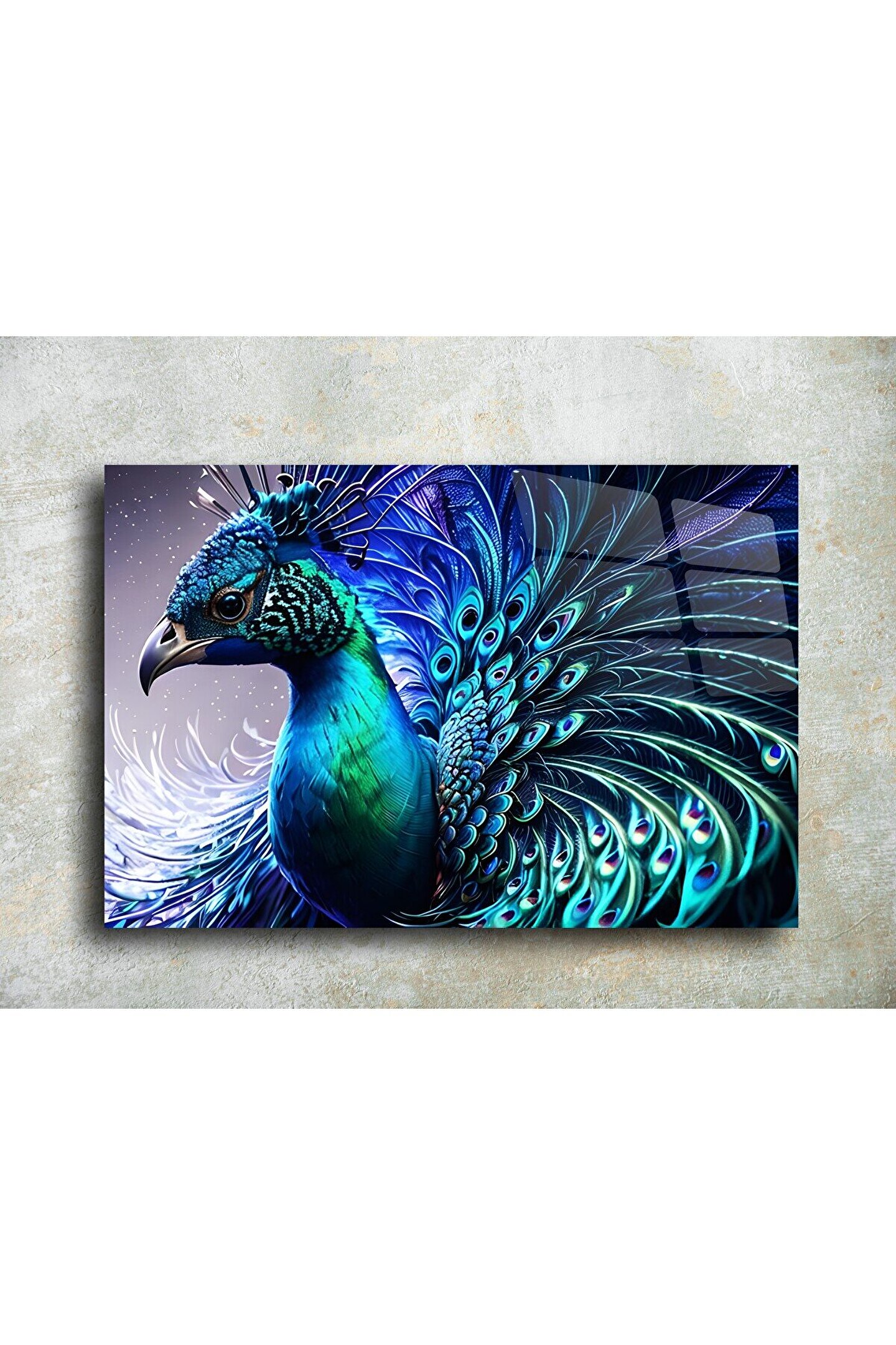 LEYLASER Tavus Kuşu Cam Tablo Duvar Dekoru 1