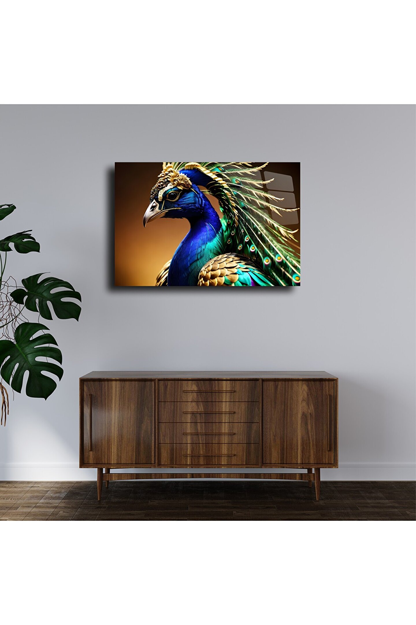 LEYLASER Tavus Kuşu Cam Tablo Duvar Dekoru 2