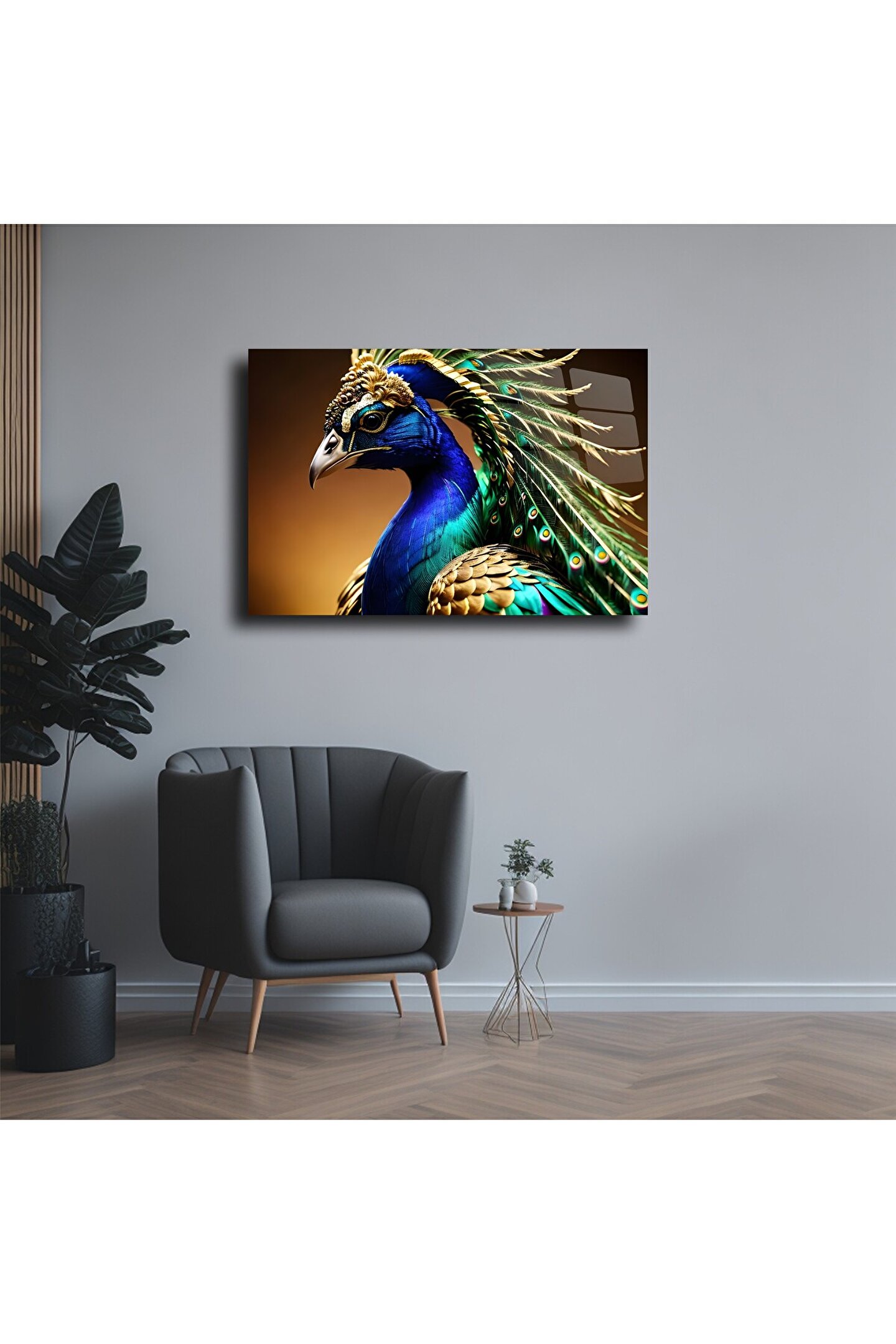LEYLASER Tavus Kuşu Cam Tablo Duvar Dekoru 2
