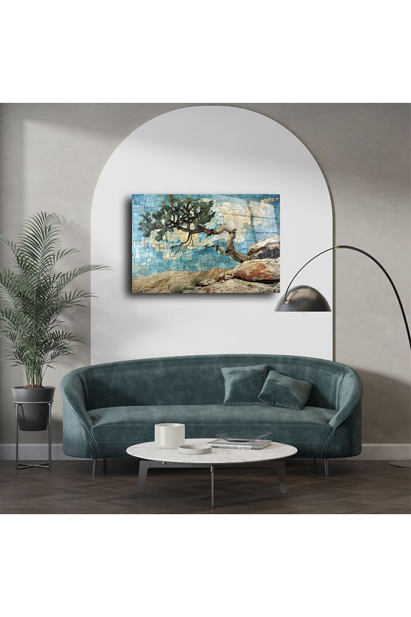 Doğanın direnci ve uyumundan ilham alan bu mavi mozaik ağaç duvar sanatıyla, yaşam alanınıza huzurlu bir zarafet ve doğallık katın. Dokulu karolar ve akışkan kompozisyon, evinizde denge ve ilham arayan herkes için sakinleştirici bir görsel yolculuk sunar.