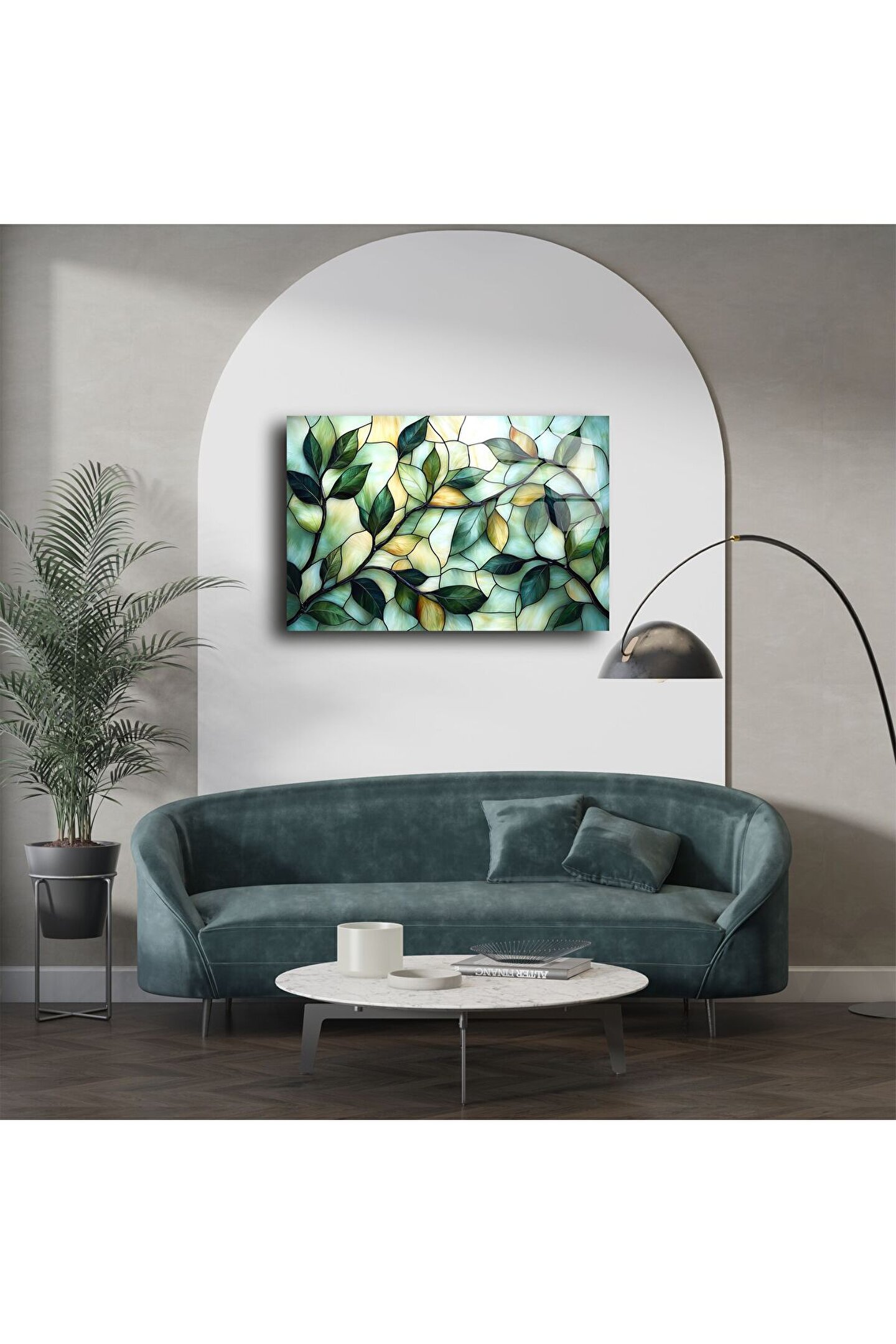 LEYLASER Zümrüt Yeşili Yapraklı Vitray Panel