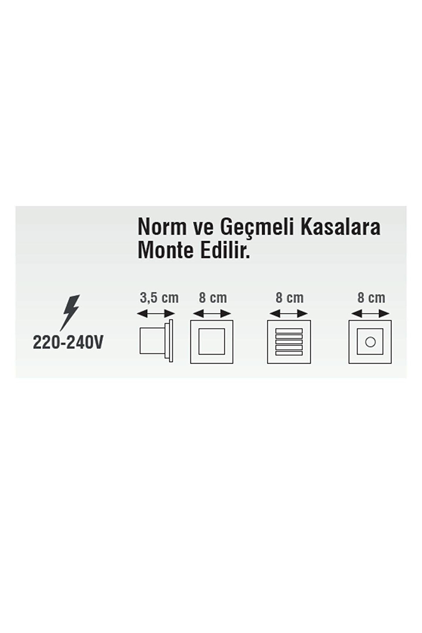 Model : Sıva Altı Duvar ve Yer LED Armatür Watt : 3W Renk : Beyaz (6500K) Ömür : 20.000 Koruma Sınıfı : IP20 Detaylar : Sıva altı duvar ve yer armatürleri , tasarım ile led teknolojisini bir araya getirerek dekoratif aydınlatma sağlar. ; Merdiven ve koridor başta olmak üzere pek çok alanda kullanacağınız sıva altı duvar ve yer armatürleri kasaları sayesinde kolayca montaj edilebilir. ; Kasanın içerisine oturtulan spotların vidaları sıkılır ve 220 volt şebeke gerilimine direk bağlanır.;